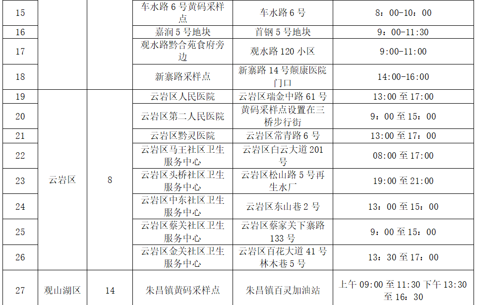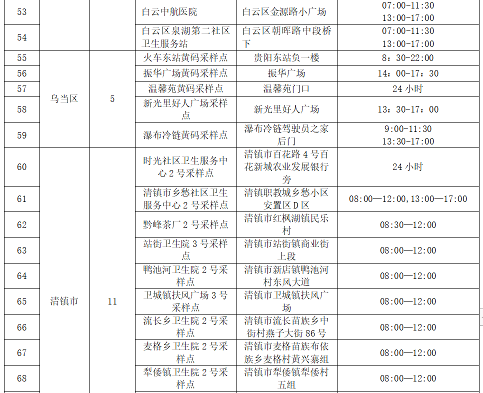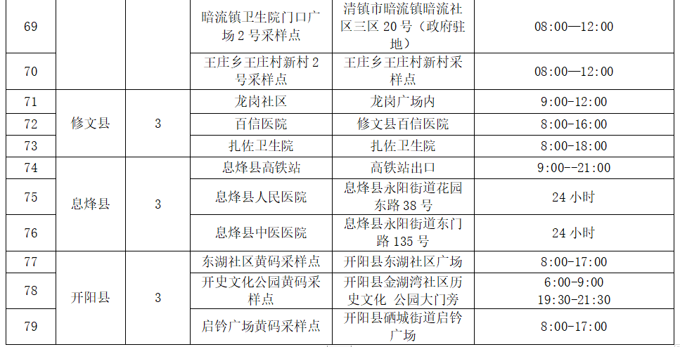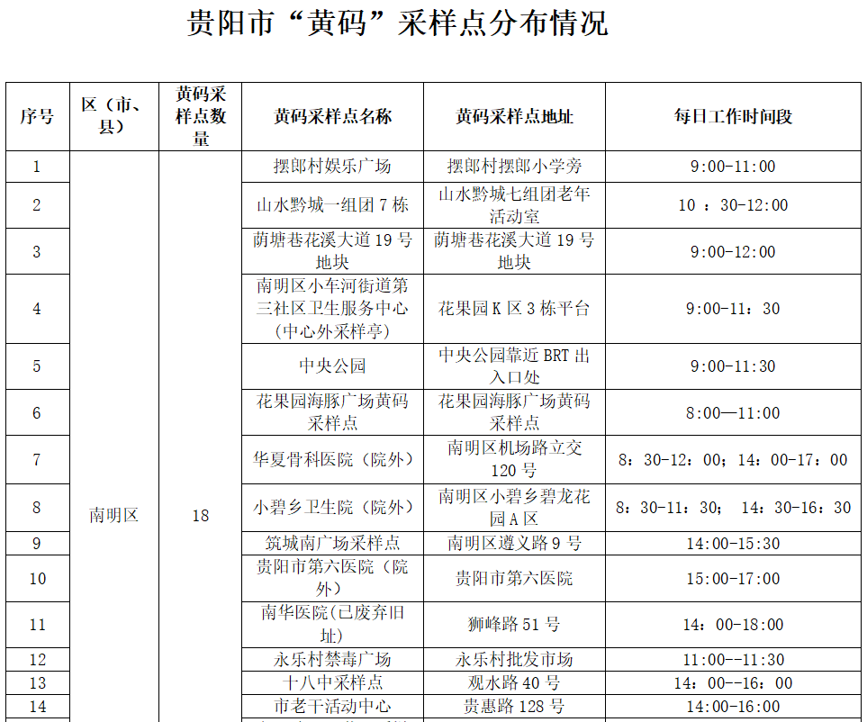 温馨提示:为方便“黄码”人员进行核酸采样,我们向社会公布了79个“黄码”核酸采样点的相关信息,其中特别增设了11个24小时“黄码”核酸采样点。“黄码”人员可以根据“黄码”核酸采样点的分布情况及工作时间,自行选择采样。
