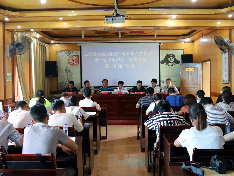 欢迎大家参加息烽县实施大招商行动及出台优惠政策情况新闻通气会,2017年底我县启动大招商行动以来,按照县委、县政府的工作部署,紧紧围绕高质量发展实体经济的工作思路,全面实现工业倍增的工作目标,加压驱动,狠抓落实,不断创新招商工作机制,坚持不懈抓招商、上项目、筑载体、稳增长,全县工业和大数据产业招商工作呈现出总量扩大、效益凸显、整体提升的良好态势。
