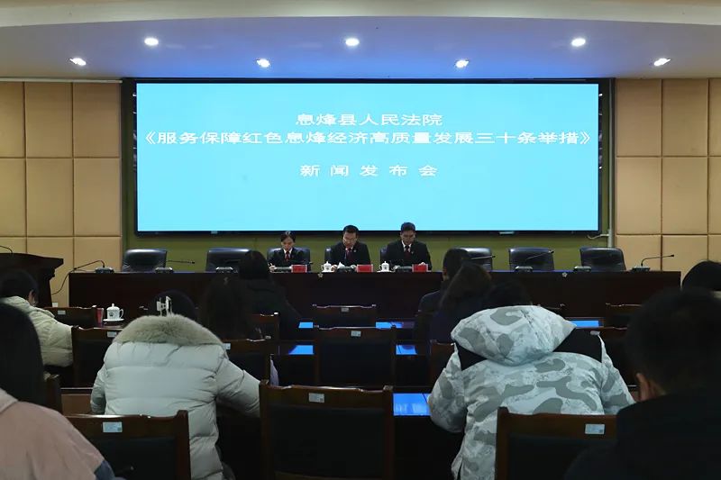 2月7日,息烽法院举行新闻发布会,现场发布《关于服务保障红色息烽经济高质量发展三十条举措》,并介绍相关典型案例、重点工作进展。