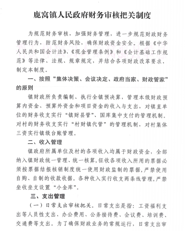 鹿窝镇人民政府财务审核把关制度