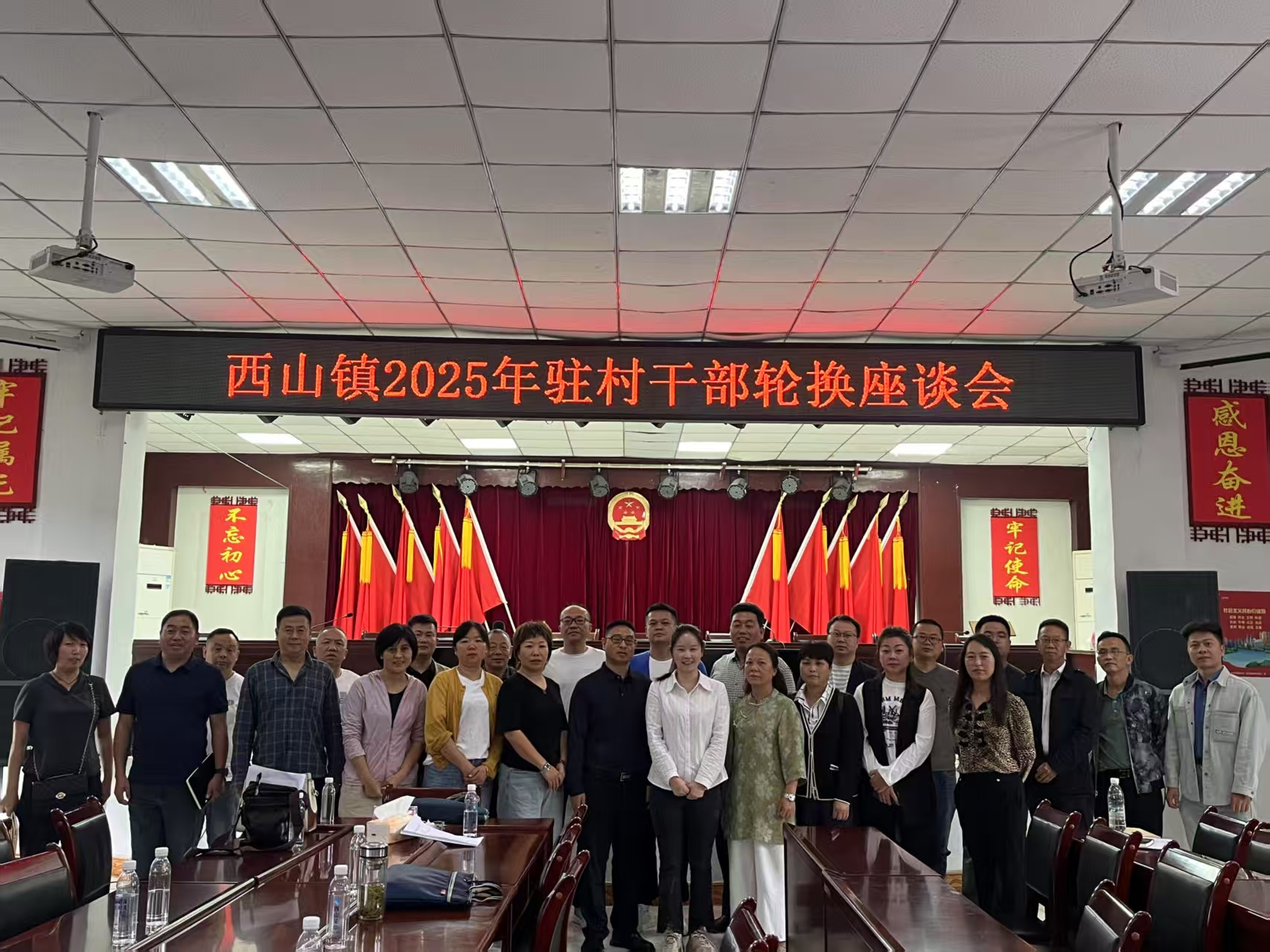 为扎实推进乡村振兴工作,做好驻村干部队伍有序衔接,6月3日上午,西山镇组织召开2025年驻村干部轮换交流座谈会,西山镇党委委员、组织委员、宣传委员、统战委员黄双惠以及全体新老驻村第一书记和工作队员参加会议。