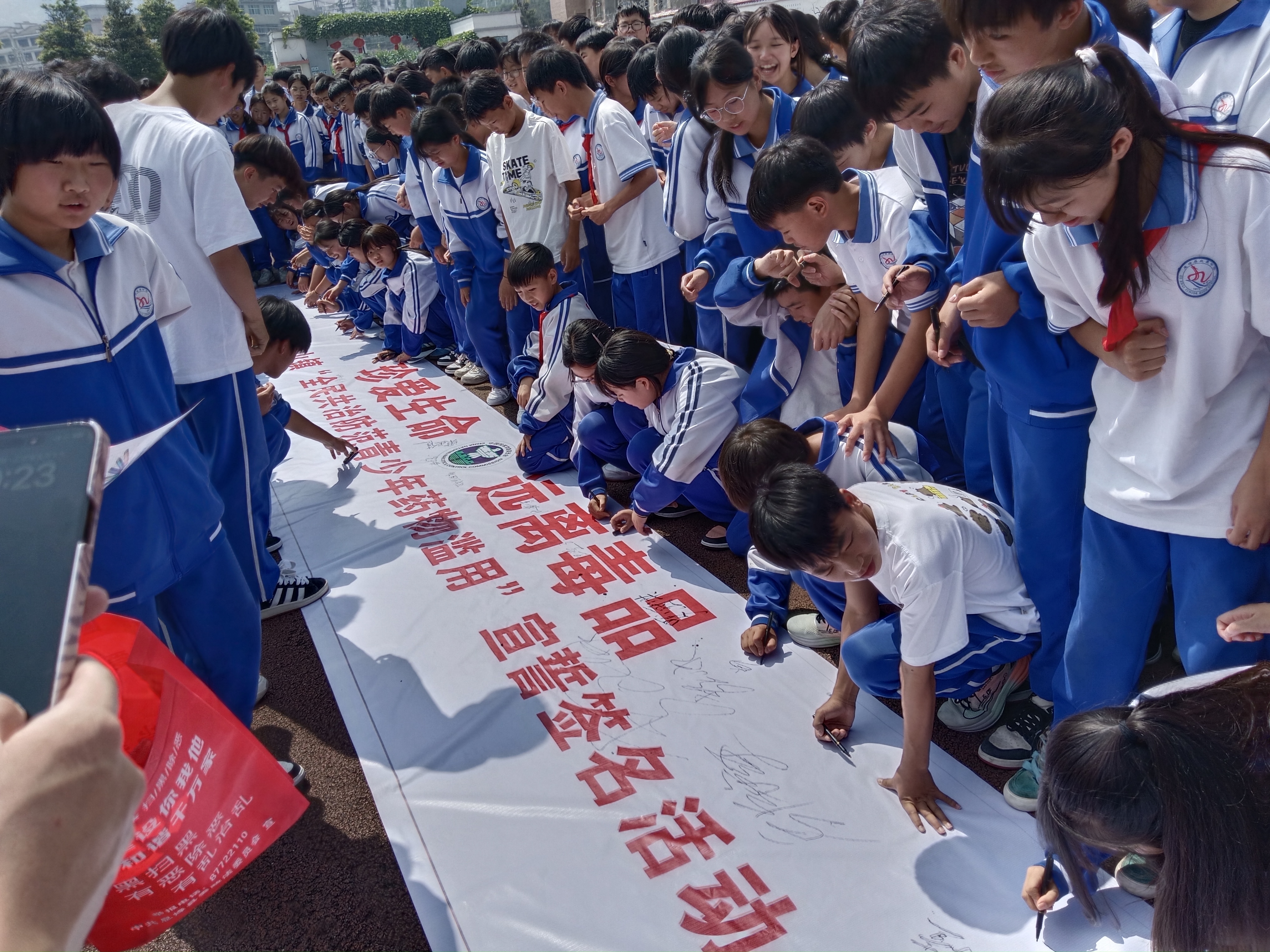 我庄严宣誓:“坚决抵制毒品诱惑,不沾毒、不染毒,积极参与禁毒斗争,主动学习禁毒知识,提高识毒、防毒、拒毒能力,为构建无毒社会奉献自己的力量!”在学校老师的带领下,全体同学高举右拳庄严宣誓,铿锵誓言响彻校园。随后,师生们依次在“珍爱生命 远离毒品”的签名墙上郑重写下姓名,承诺从自身做起,争当禁毒宣传员。同学们纷纷表示:“签上名字就像按下‘责任手印’,我要把学到的知识告诉我的家人和朋友,一起远离毒品。”