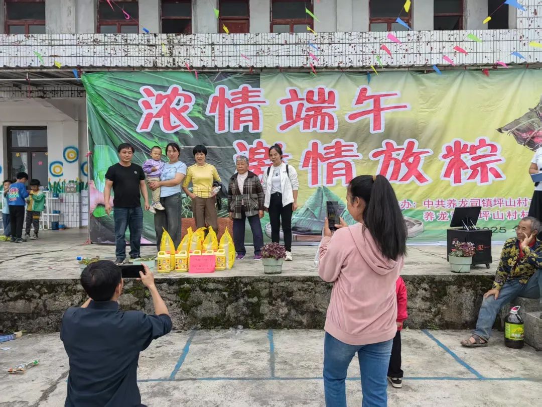 端午节是我国历史悠久的传统节日,承载着深厚的文化底蕴和民俗风情。为弘扬中华优秀传统文化,丰富群众的精神文化生活,近日,养龙司镇坪山村以“浓情端午,欢聚一堂;‘五治’同行,‘粽’享未来”为主题,将传统民俗与基层治理交融,在养龙司镇坪山村幼儿园广场上演一场别开生面、精彩纷呈的乡村盛会。