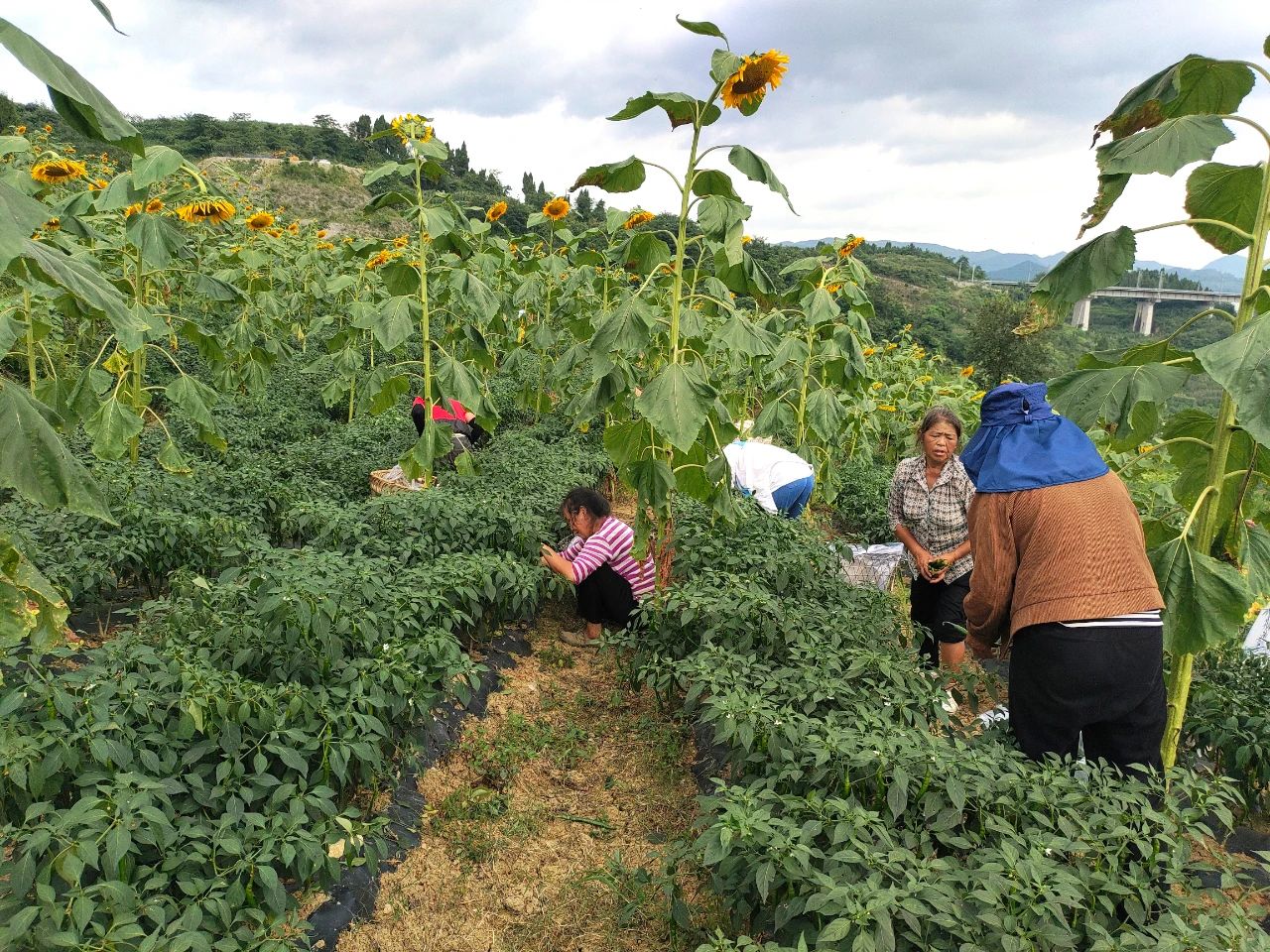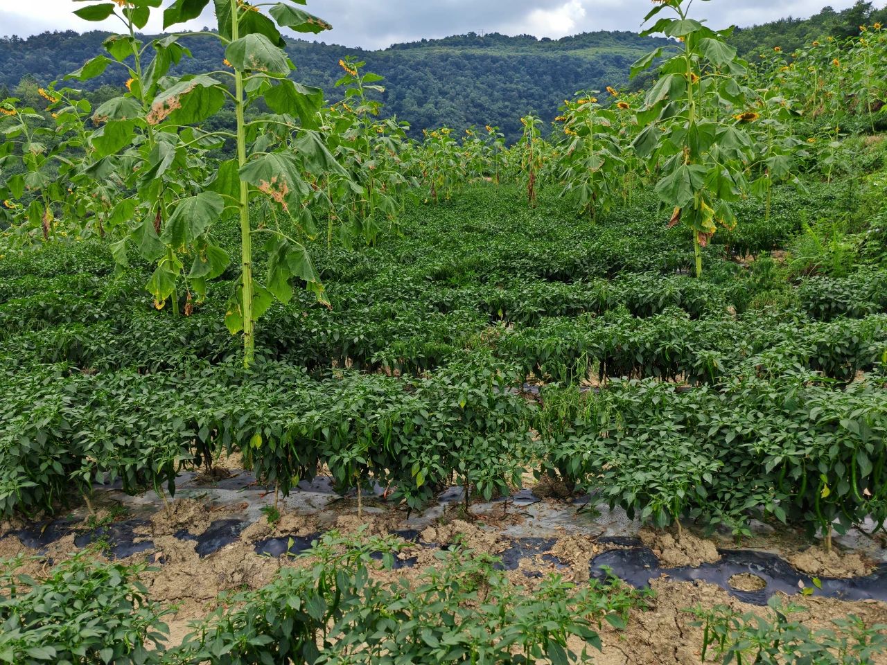据幸福村党支部书记蔡文恒介绍,2024年3月,幸福村村集体立足本村优势,结合地理、气候等自然条件,在上级农技专家的帮助指导下,套种3号线椒与向日葵共计140余亩,3号线椒亩产可达4000—5000斤,村集体经济预计可增收90余万元。