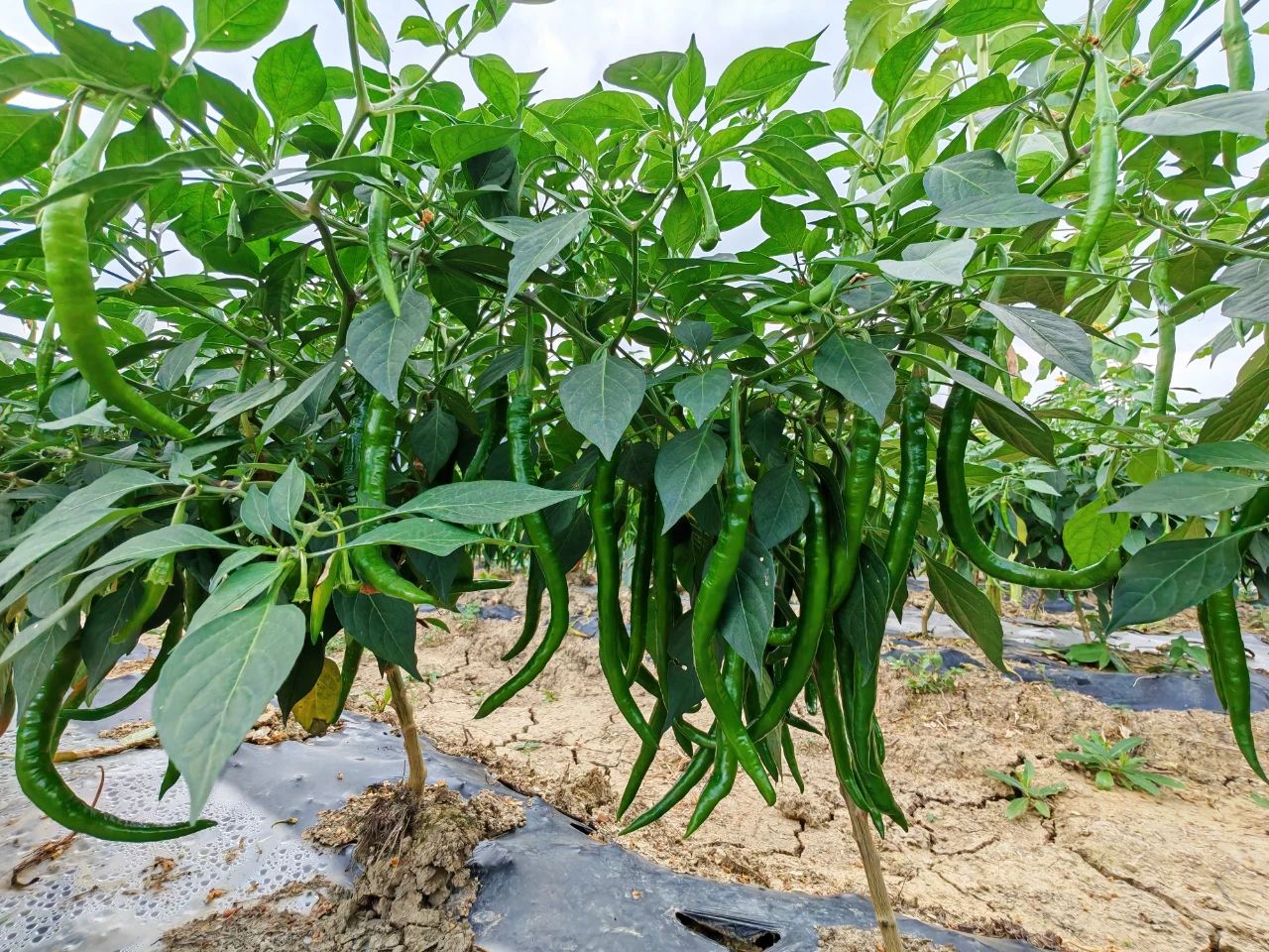 骄阳灿灿好光景,辣椒田里话丰收。时下,正值辣椒成熟采摘期,走进养龙司镇幸福村的辣椒种植基地,一排排辣椒生长旺盛,满目青椒翠如翡玉,挂满枝头,让人不自觉地露出笑脸。