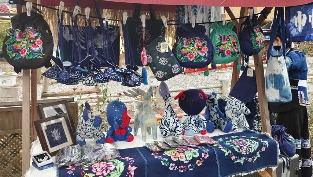 华美精致的马尾绣、伴我们长大的手工背带、穿越千年风尘的芦笙、食品级的口红、汲取龙年元素的蜡染……各类文创作品吸引了众多游客驻足观看、体验购买。