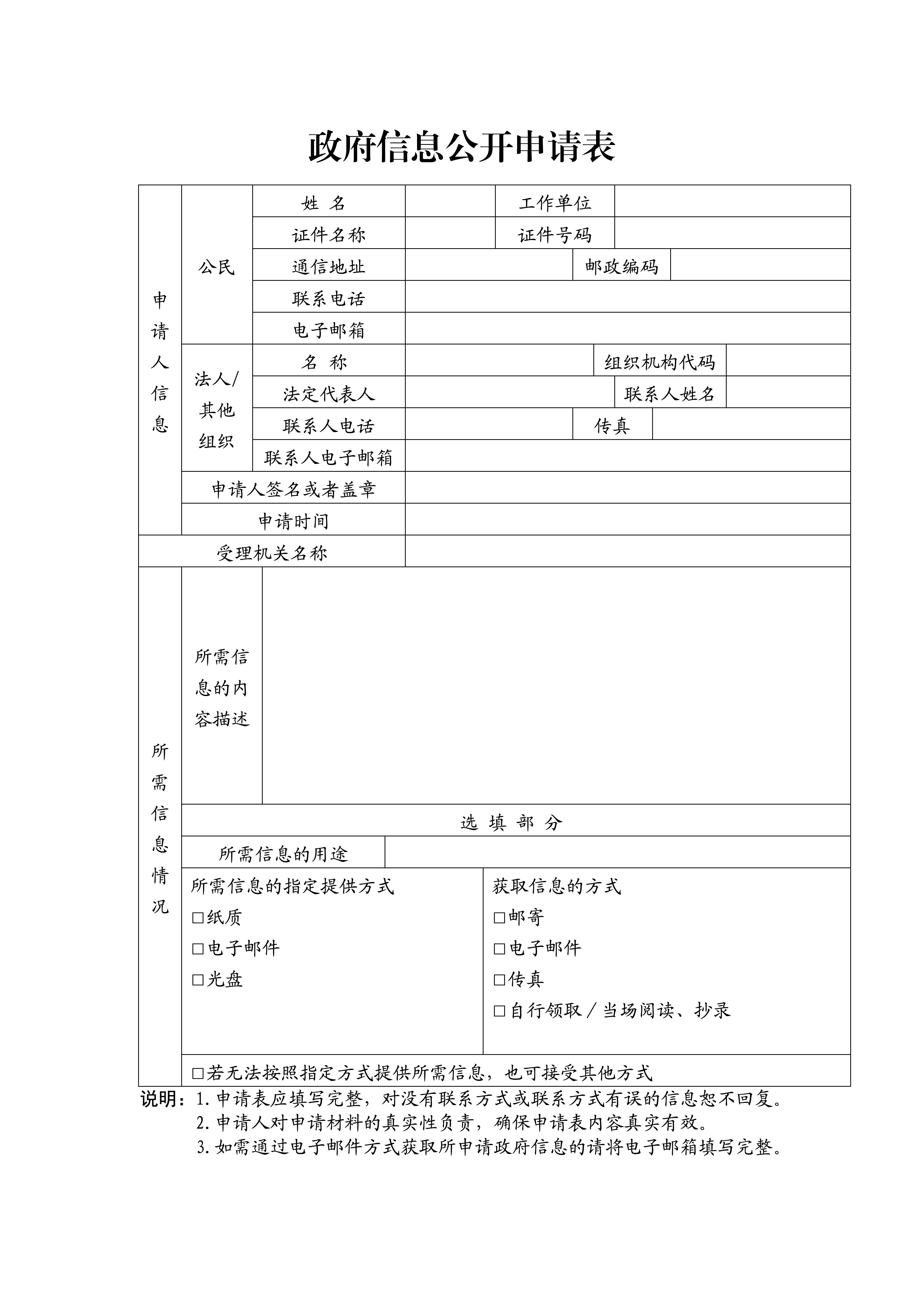 书面申请。申请人填写《申请表》后,可以通过传真、信函方式提出申请,通过信函方式申请的,应在信封左下角注明“政府信息公开申请”字样。申请人申请获取与自身相关的政府信息时,应当持有效身份证件,当面提交书面申请。