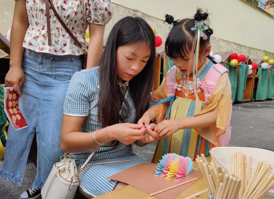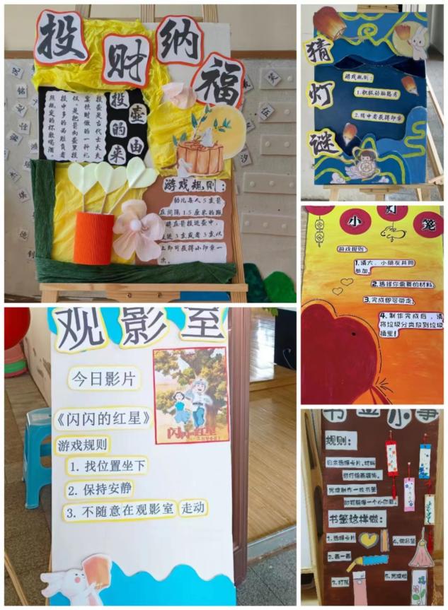 为了营造出浓厚的中秋节日及国庆节氛围,激发幼儿参加活动的热情,充分感受中国的传统文化。幼儿园还设计了手工、绘画、套圈、投壶、捏月饼、猜灯谜、制作扇子、书签等多种活动,让幼儿进一步去感受中秋佳节及国庆节的节日氛围。让我们一同进入快乐的游园时光吧!一起看看小朋友们的精彩表现!