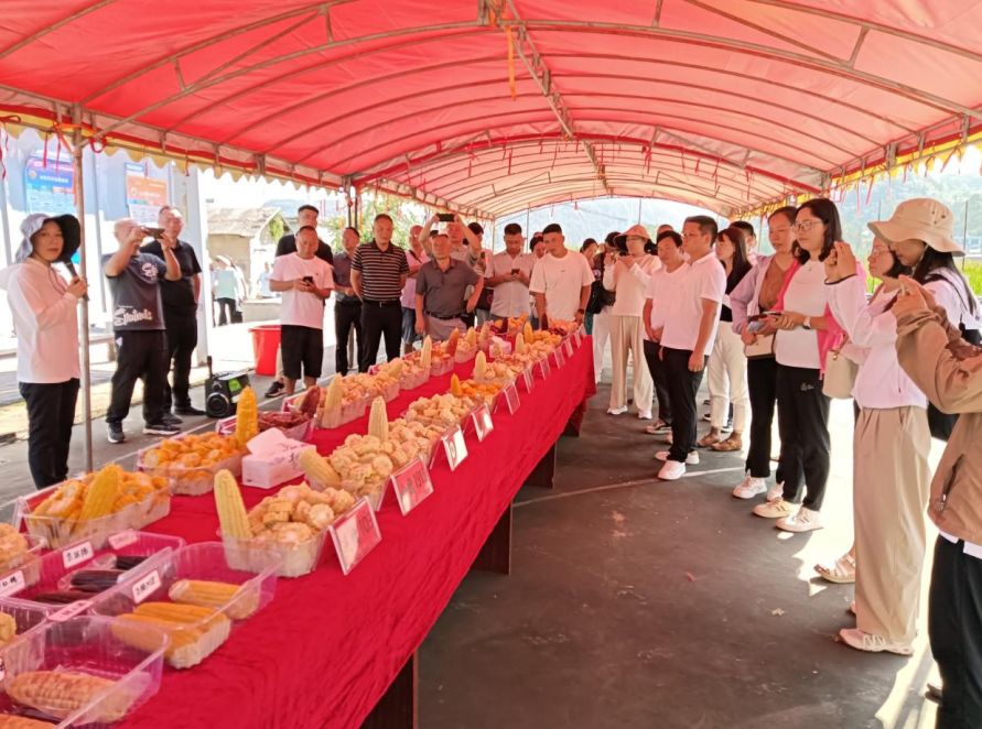 会议首站,与会人员来到息烽县小寨坝镇大湾村玉米绿色高产高效项目核心示范区,开启实地观摩。示范田内,玉米植株健壮挺拔,果穗饱满匀称,丰收景象尽收眼底。据介绍,该示范区通过良种覆盖、一增五改、病虫害绿色防控等关键技术集成应用,预计亩产较传统种植提升超20%,观摩现场设置鲜食玉米品鉴环节,展现来自全省各县区的20余个鲜食玉米,涵盖糯玉米、甜玉米、甜+糯3个组别,与会人员通过品鉴,直观感受优质品种的口感优势与市场潜力。