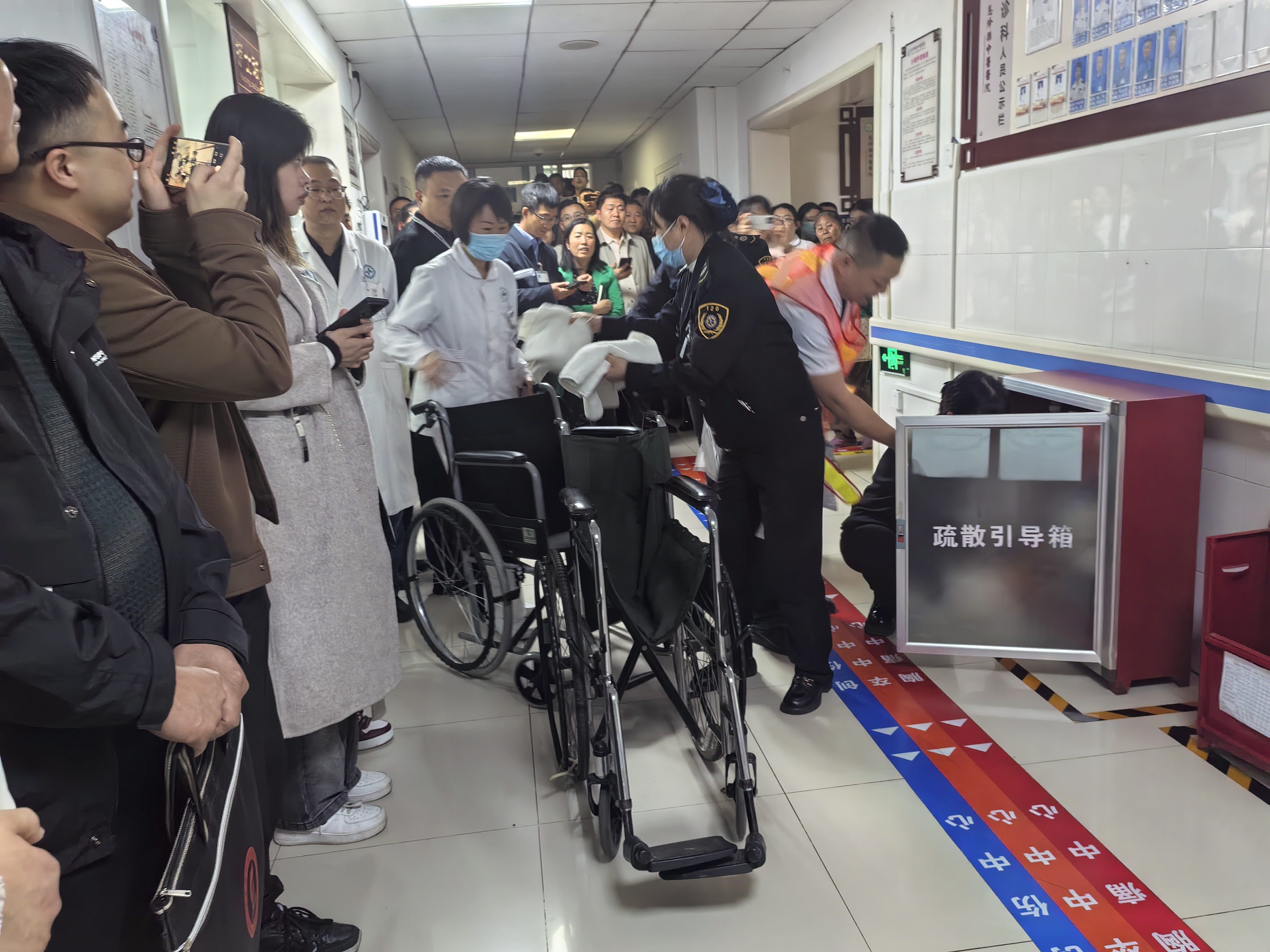 为检验培训效果,组织全体参会人员开展模拟消防应急演练。随着警报声响起,医护人员启动应急预案,引导“患者”沿安全通道有序撤离至空旷区域。随后,参演人员分组使用灭火器对模拟火源进行扑灭,全程反应迅速、操作规范,展现了良好的应急处置能力。