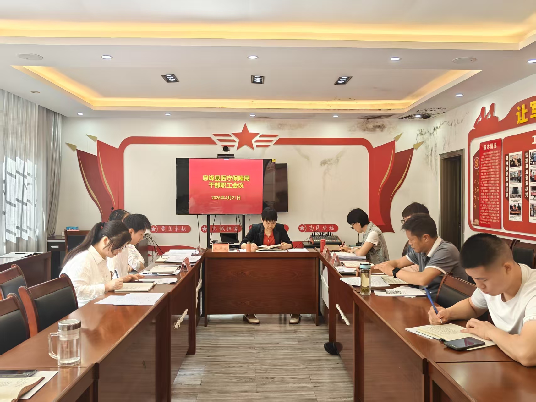 4月21日,县医疗保障局党组书记、局长张孟碧同志主持召开干部职工会议,深入学习贯彻习近平总书记在中央周边工作会议上的重要讲话精神,传达学习省委、市委、县委、县政府近期会议精神,安排和部署相关工作。