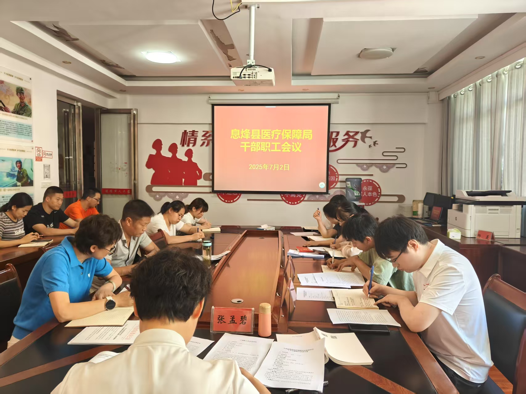 会议要求:一要抓好学习领会。认真学习习近平生态文明思想,习近平总书记关于统筹发展和安全的重要论述、关于耕地保护和粮食安全的重要论述,深入贯彻习近平总书记对发展和安全工作作出的重要指示精神,为统筹推动医保高质量发展提供强大精神力量。二要抓好专项整治工作。持续加大医保基金管理突出问题专项整治工作推进力度,深入排查问题线索,建立健全医保基金监管制度机制,办成一批群众可感可及的实事。三要抓好我局“十五五”规划谋划工作。要深入学习贯彻习近平关于中长期规划的重要讲话精神,结合我局工作实际,配合做好全县“十五五”规划编制等相关工作。四要抓实医保经办服务。扎实开展“三办协同”,持续推进“就近办、简便办、线上办”,深入做好“一网通办”“2+2”模式改革,全面做好企事业职工医保转接相关工作,充分营造便利化营商环境,为参保群众提供稳定、便捷、高效的医保服务。