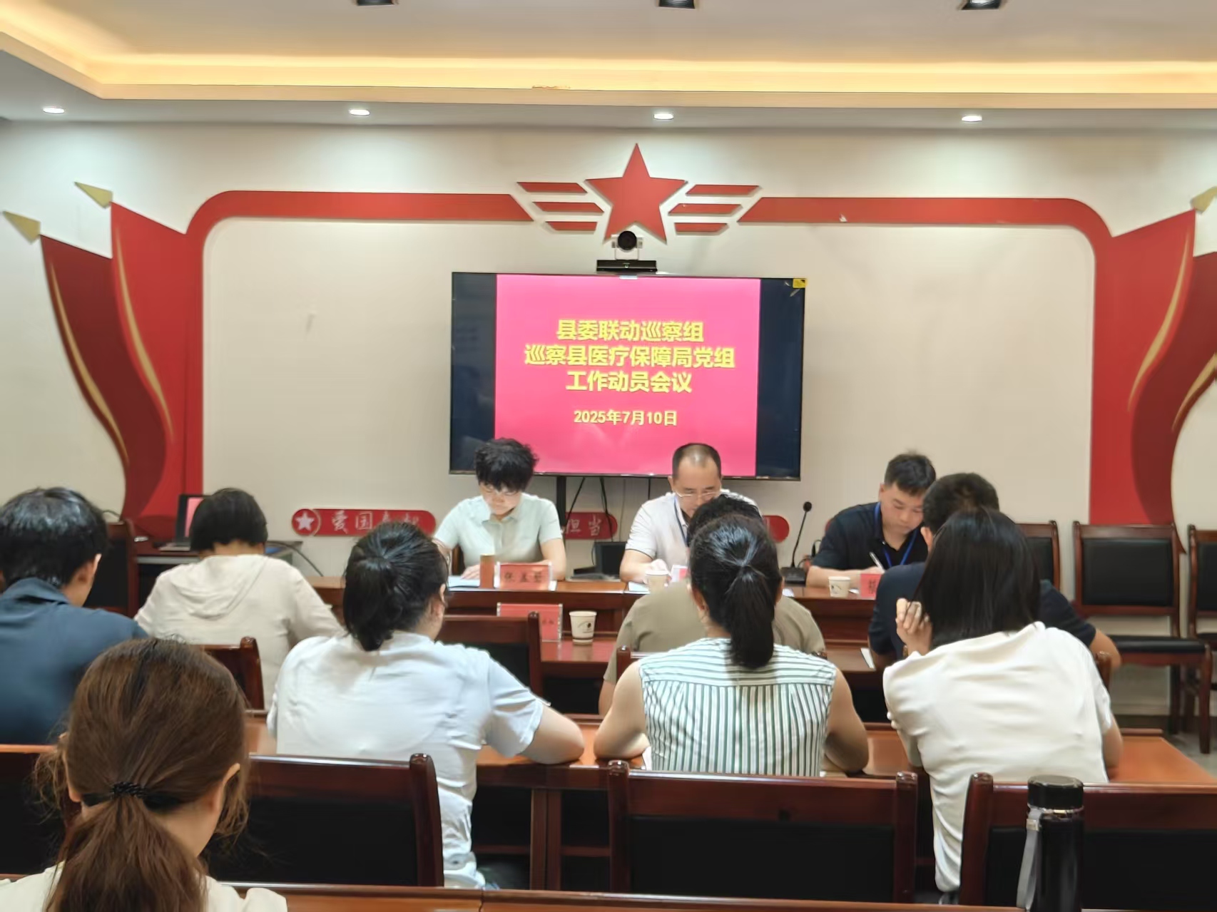 根据县委关于巡察工作的统一部署,2025年7月10日下午,县委联动巡察组巡察县医疗保障局党组工作动员会召开。会前,县委联动巡察组组长张毅主持召开与县医疗保障局党组书记、局长张孟碧的见面沟通会,传达了省委、市委、县委有关巡视巡察工作精神。会上,张毅组长作了动员讲话,对做好巡察工作提出了具体要求,张孟碧主持会议并作了表态发言。