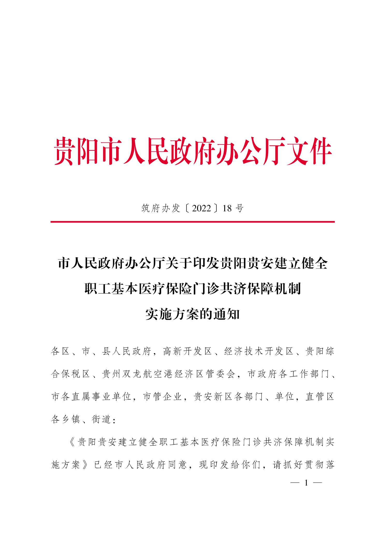市人民政府办公厅关于印发《贵阳贵安建立健全职工基本医疗保险门诊共济保障机制实施方案》的通知