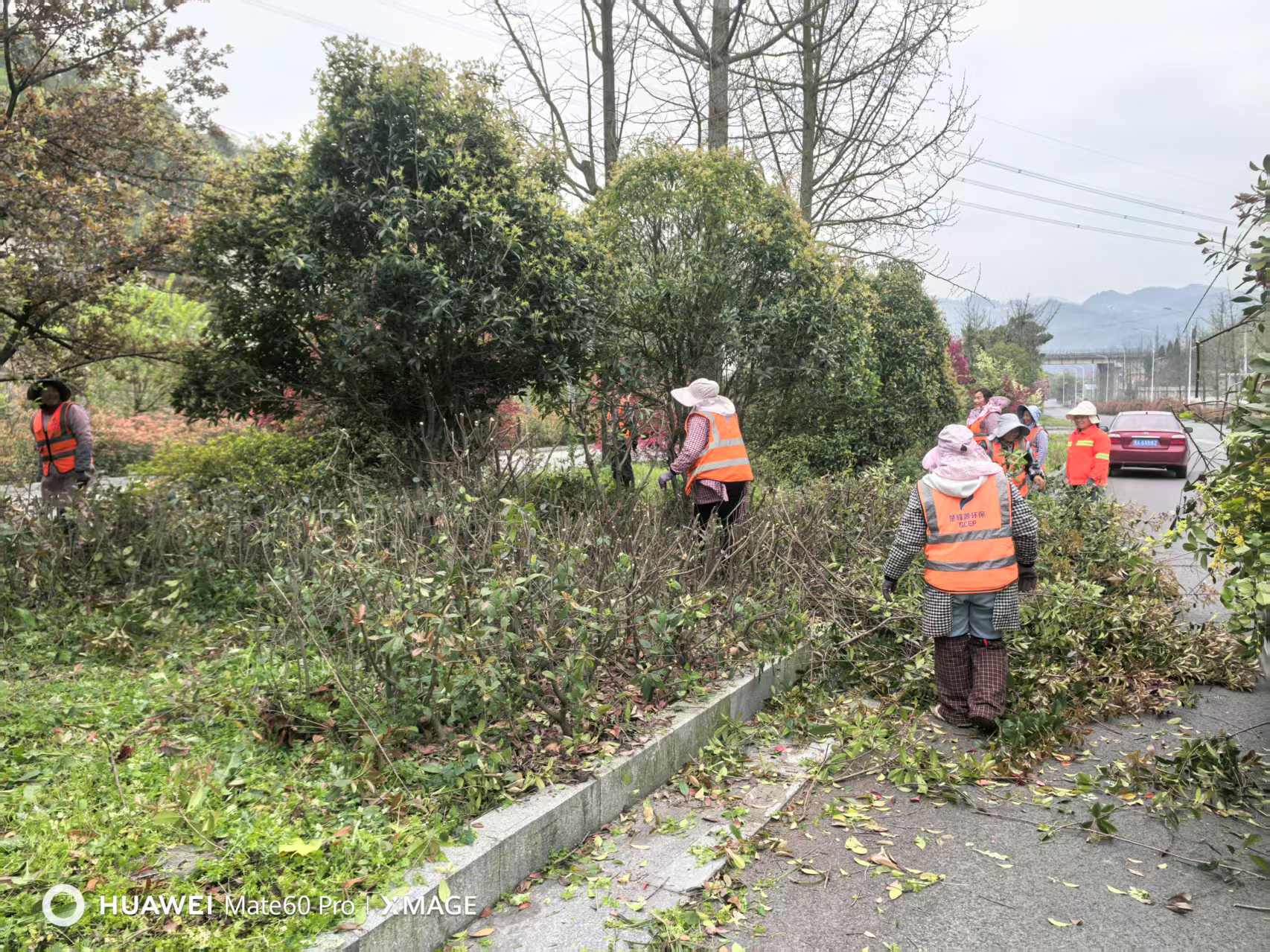修剪人员忙碌穿梭,杂乱树冠变得齐整,灌木造型棱角分明,枯枝、病虫枝被去除,不仅降低了病虫害风险,还增强了苗木抗逆性。最后工作人员对修剪产生的树枝和枯叶进行了清理、同时对周围的环境也进行了打扫和整理,保持区域整洁。