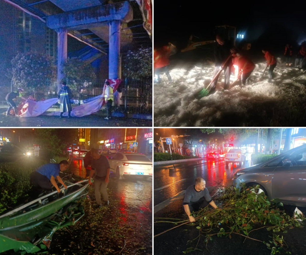 2025年4月20日晚,息烽受强暴雨和冰雹影响,道路积水、部分区域冰雹厚度达到20厘米—50厘米。息烽县综合行政执法局人员闻令而动,第一时间奔赴隐患点。