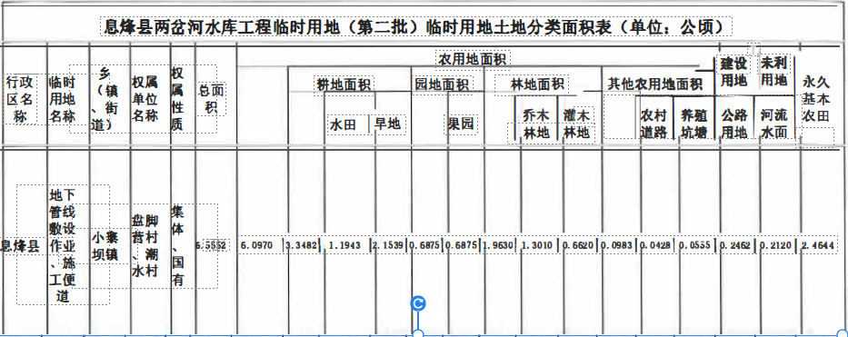附件:息烽县两岔河水库工程临时用地(第二批)临时用地地分类面积表及图示