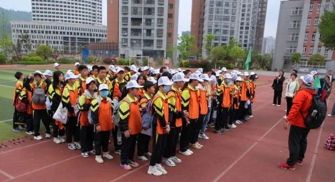 活动当天,学生们列队整齐的从云环小学出发,前往参观平塘国际天文体验馆与南仁东事迹馆。