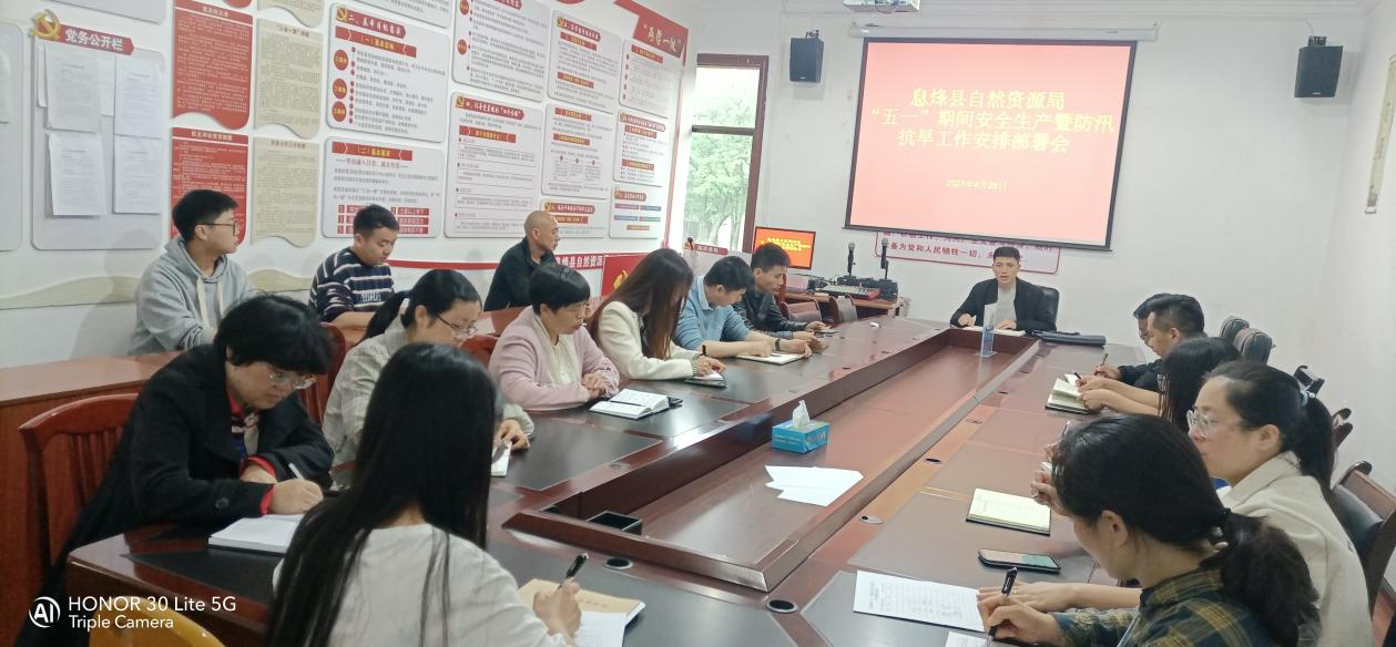 为充分做好2023年度自然资源领域“五一节”期间安全生产及防汛抗旱工作,4月28日,副局长刘平主持召开“五一节”期间安全生产及防汛抗旱工作安排部署会。会议传达4月26日全省全市安全生产暨防汛抗旱电视电话会议精神并对“五一节”期间安全生产工作进行安排:
