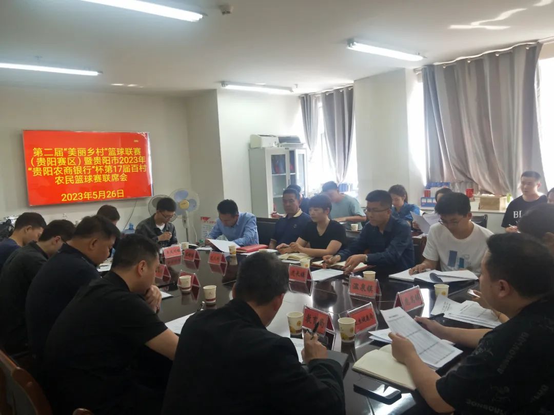 为了举办好这次乡镇“村BA”冠军联赛,2023年5月26日,组委会再次组织召开贵州省第二届“美丽乡村”篮球联赛(贵阳赛区)暨贵阳市2023年“贵阳农商银行”杯第17届百村农民篮球赛(息烽预选赛)联席会议,将赛事场地环境整治、应急救援、食品安全及医疗救护、交通安全等工作进行再安排再部署,全力守护运动员安全。