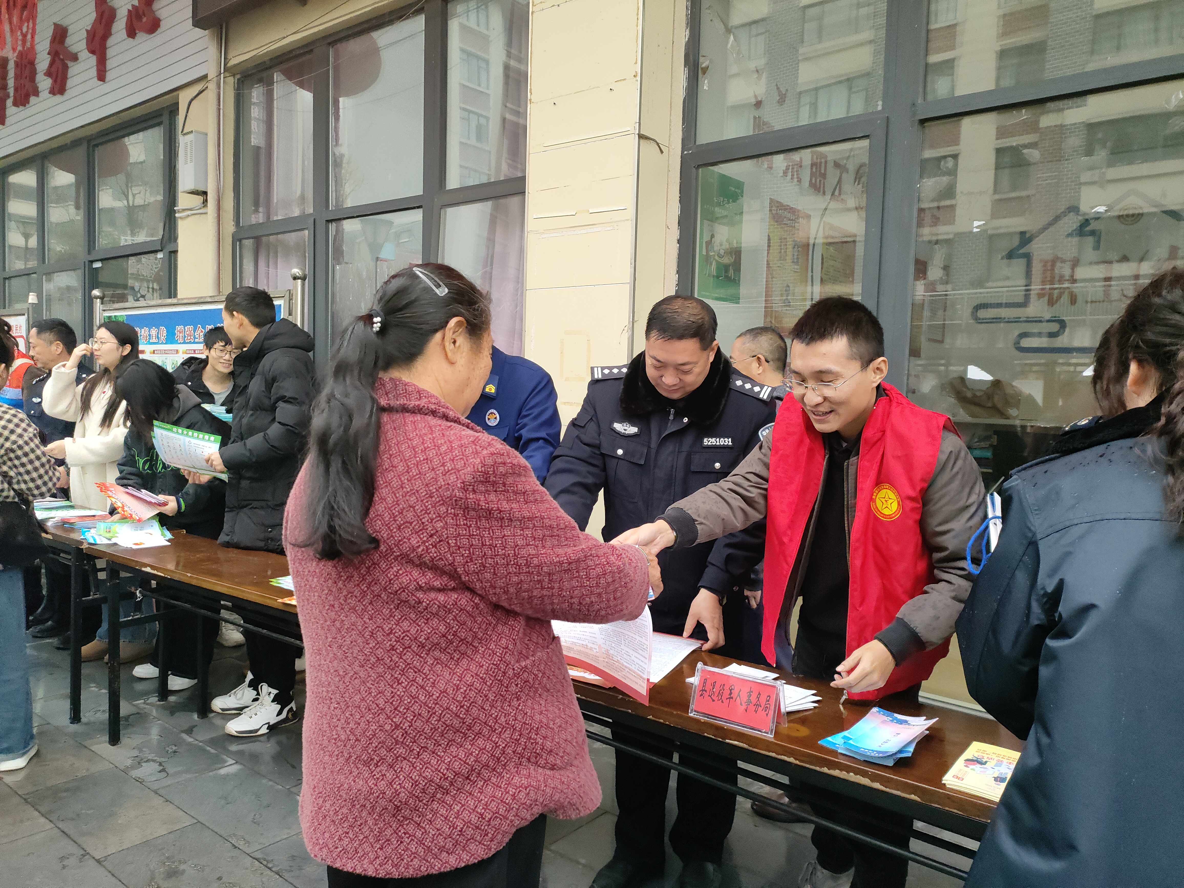 活动现场,县退役军人事务局的工作人员向社区居民及过往群众发放了《中华人民共和国宪法》《中华人民共和国退役军人保障法》《中华人民共和国兵役法》《中华人民共和国禁毒法》及《法律法规宣传册》等宣传资料,共计50余份。资料内容详实,旨在帮助退役军人及群众更好地了解国家法律法规,维护自身合法权益。