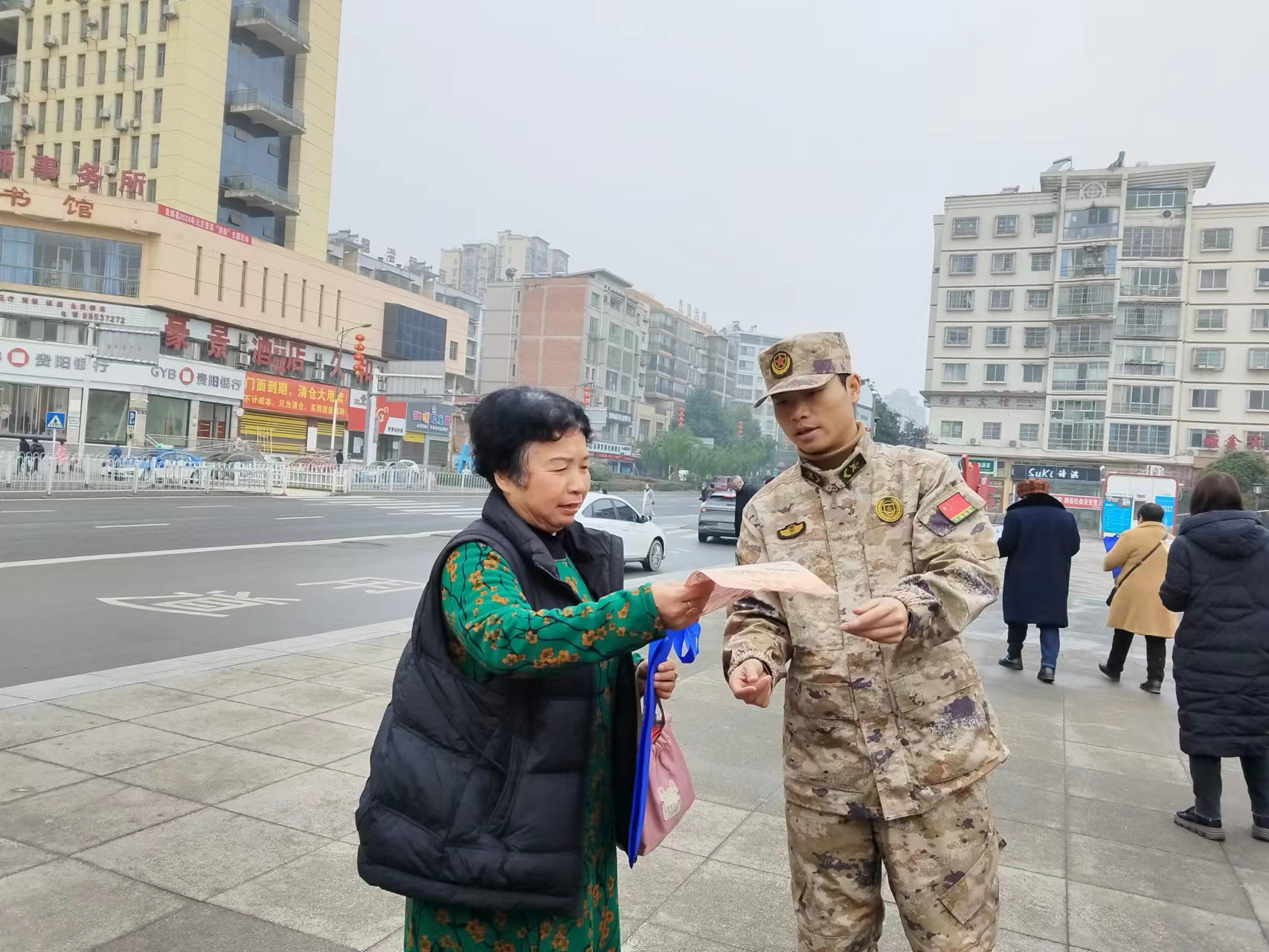 永阳街道组织退役军人志愿服务队联合村居在十字街、高铁站开展宪法和法治宣传活动。