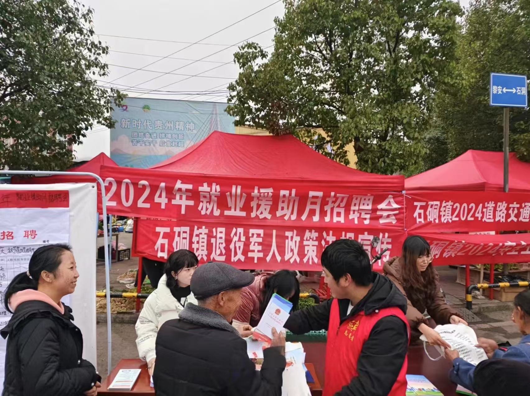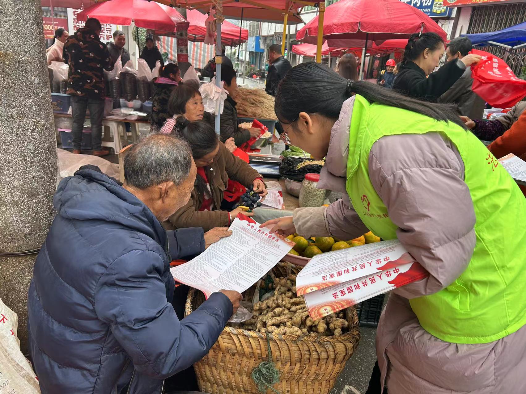 永靖镇举办《中华人民共和国宪法》及退役军人相关法律法规宣传活动,通过设立宣传展板与咨询服务台,在黎安赶集点向赶集群众普及法律知识。