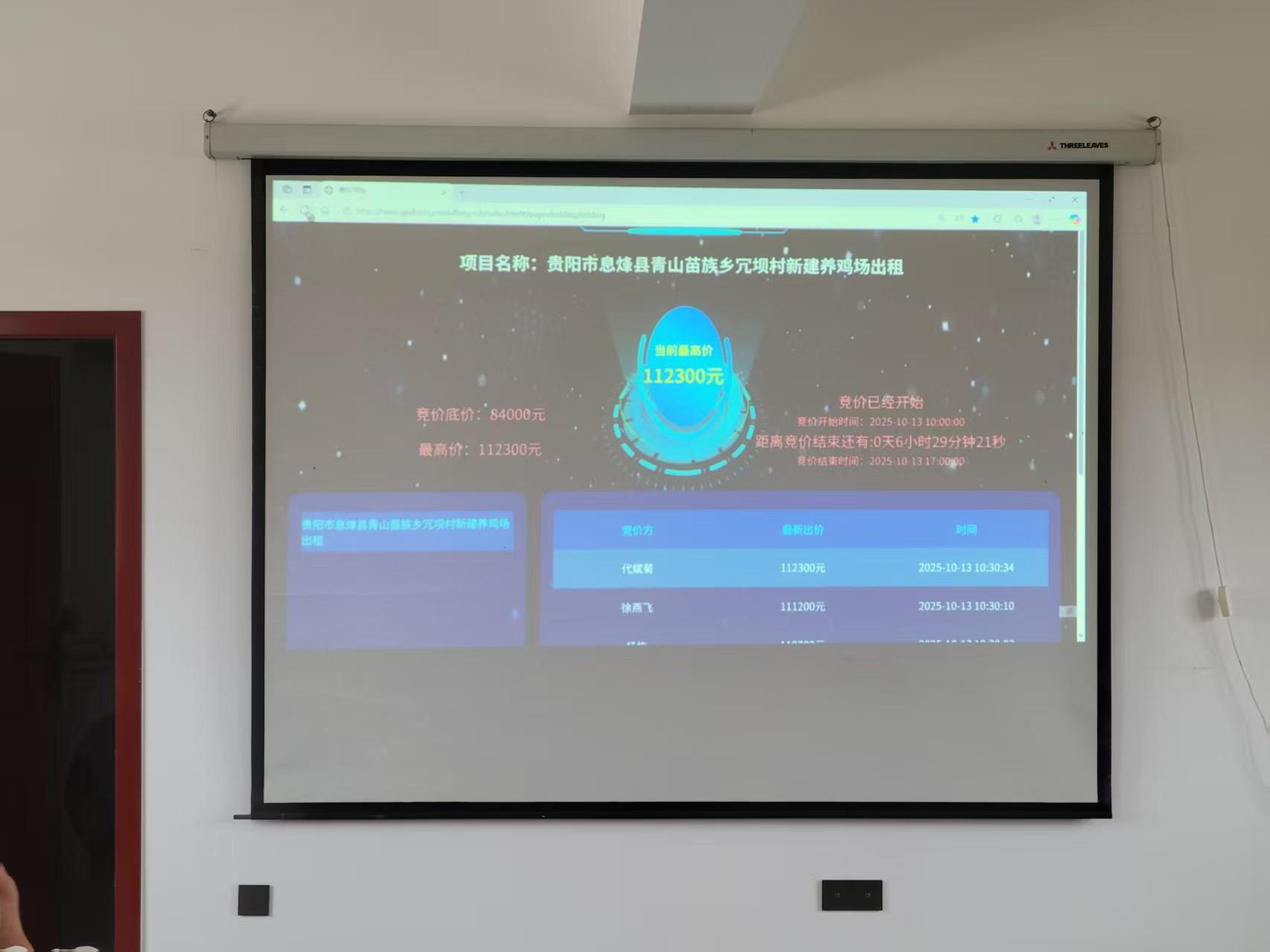 针对新建养鸡场的独特优势,息烽农村产权交易中心通过线上公众号重点宣传项目亮点,最终吸引6家市场主体(含1家养殖企业、5户个体经营户)报名参与竞价,形成激烈竞争态势。2025年10月13日开启网络竞价,各意向承租方围绕养鸡场的全新设施优势展开出价。竞价从8.4万元起始价开始,经过52次出价,最终以14.42万元成功竞得承租权。此次成交价格较挂牌起始价溢价6.02万元,溢价率高达71.67%,远超预期增值目标,充分彰显了新建养殖资产在市场化竞争中的强劲价值潜力。