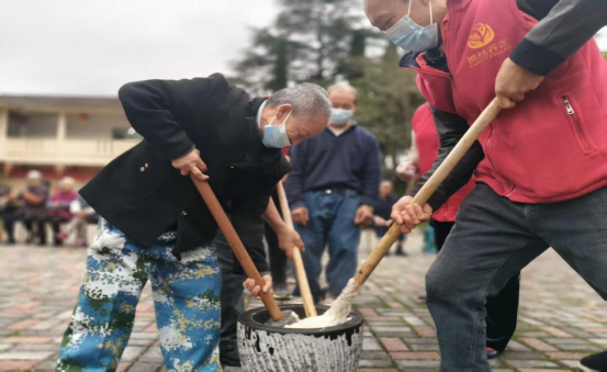 打糍粑环节将活动推向高潮。老人们兴致勃勃地参与其中,在护理人员的协助下体验传统民俗制作的乐趣。大家品尝着自己亲手制作的热腾腾、软糯糯的糍粑,脸上洋溢着幸福的笑容。活动现场还准备了新鲜水果、点心和花茶,老人们围坐一起,边品尝美食边唠家常,感受着浓厚的节日氛围。