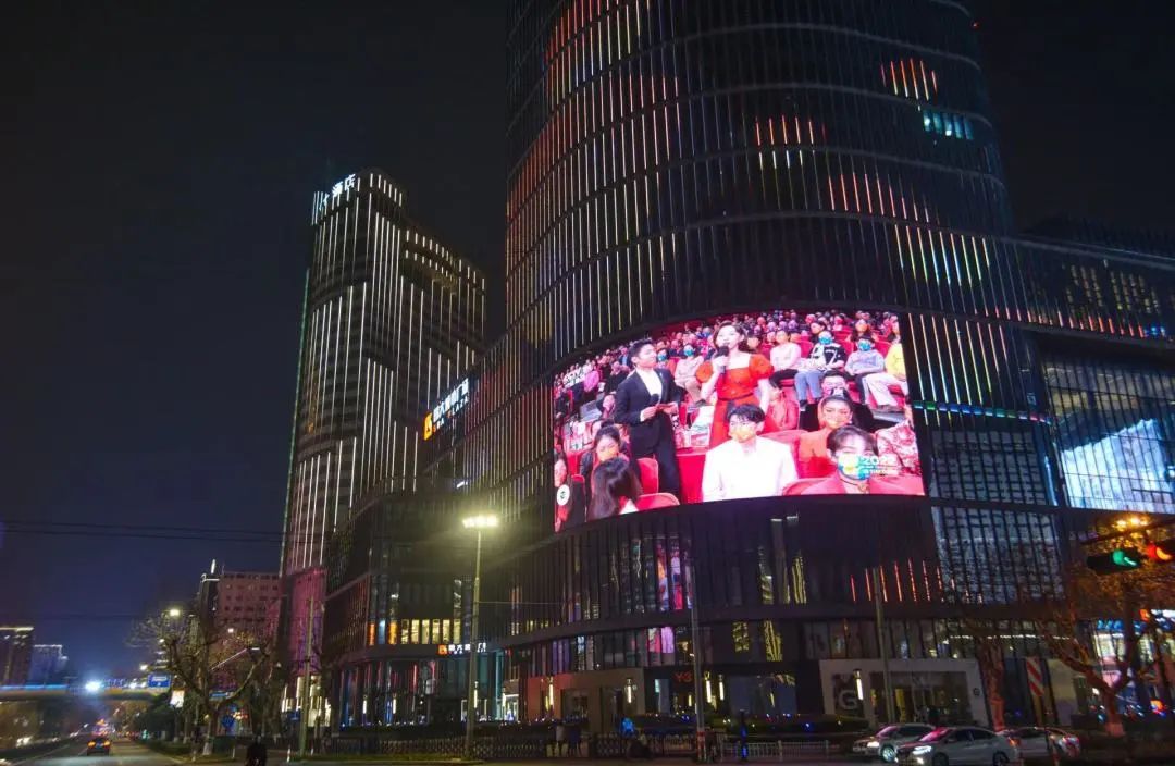 深圳广电楼外大屏则在直播小品《休息区的故事》。