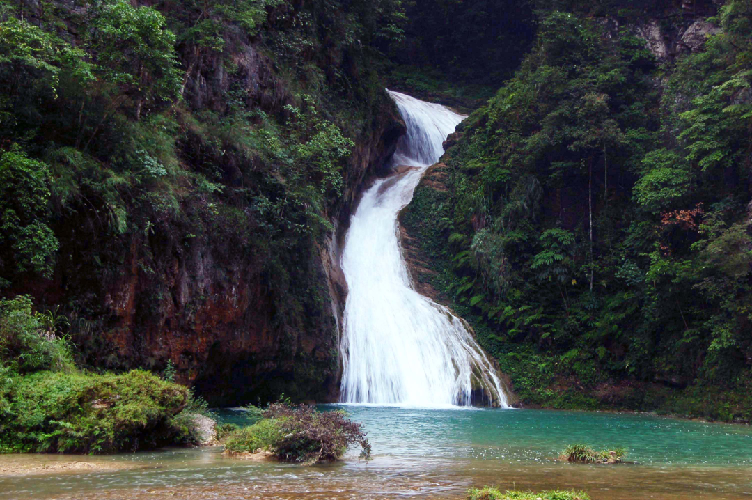 开阳县-红岩口瀑布,开阳悬崖双级瀑布探险