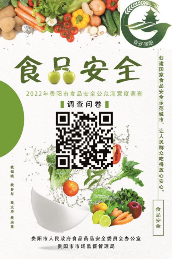 近日,记者从贵阳市市场监督管理局获悉,为创建国家食品安全示范城市,让人民群众吃得放心安心。贵阳市人民政府食品药品安全委员会办公室组织开展2022年度全市食品安全公众满意度调查,调查将全面、客观、公正掌握全市各地居民对食品安全工作与现状的满意程度,了解掌握广大市民朋友对全市食品安全的感受,进一步改进工作,提高全市食品安全保障水平。