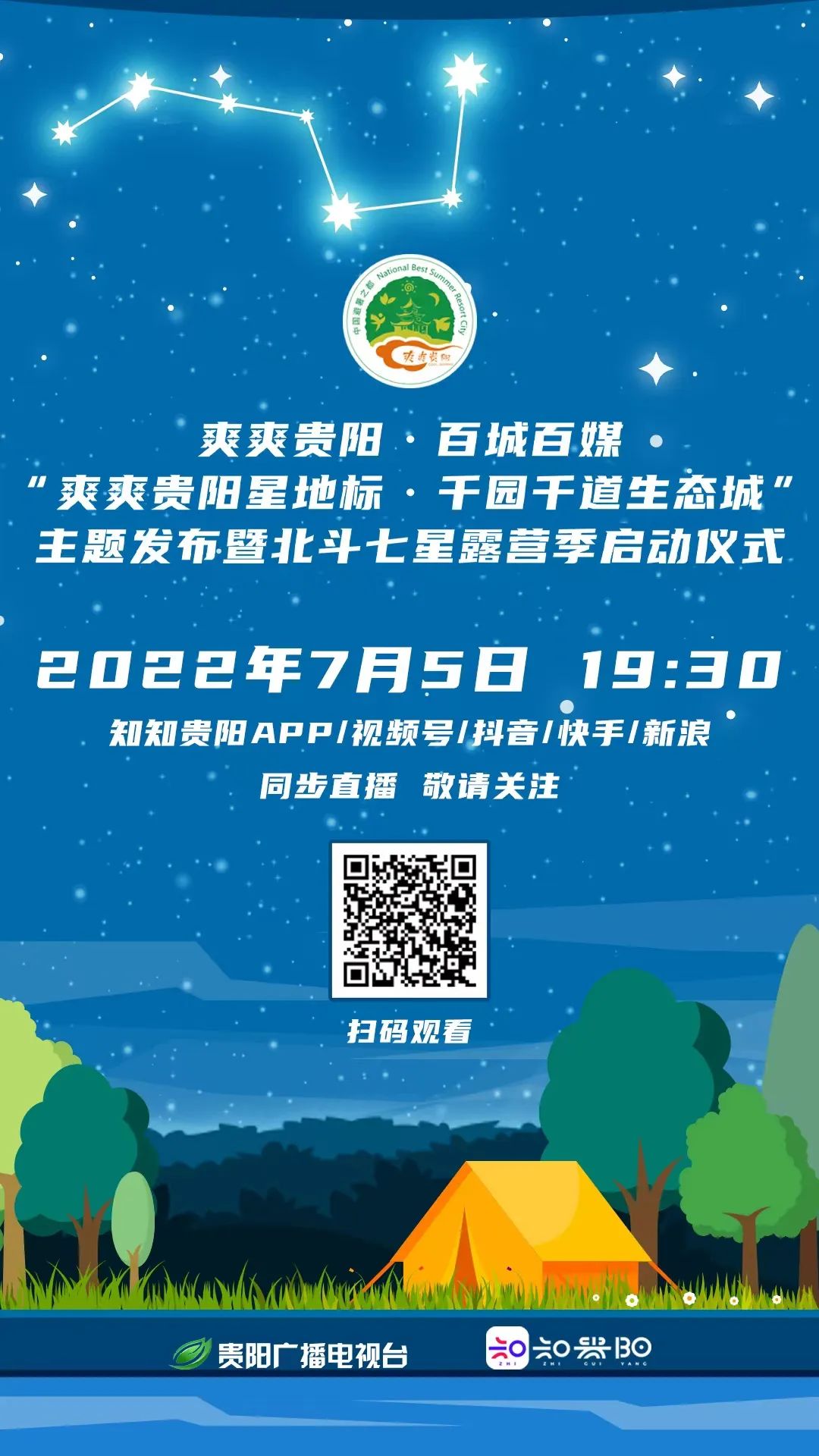 今天(7月5日)19:30,“爽爽贵阳星地标·千园千道生态城”主题发布暨北斗七星露营季启动仪式,将在阅山湖公园星空露营基地举行。