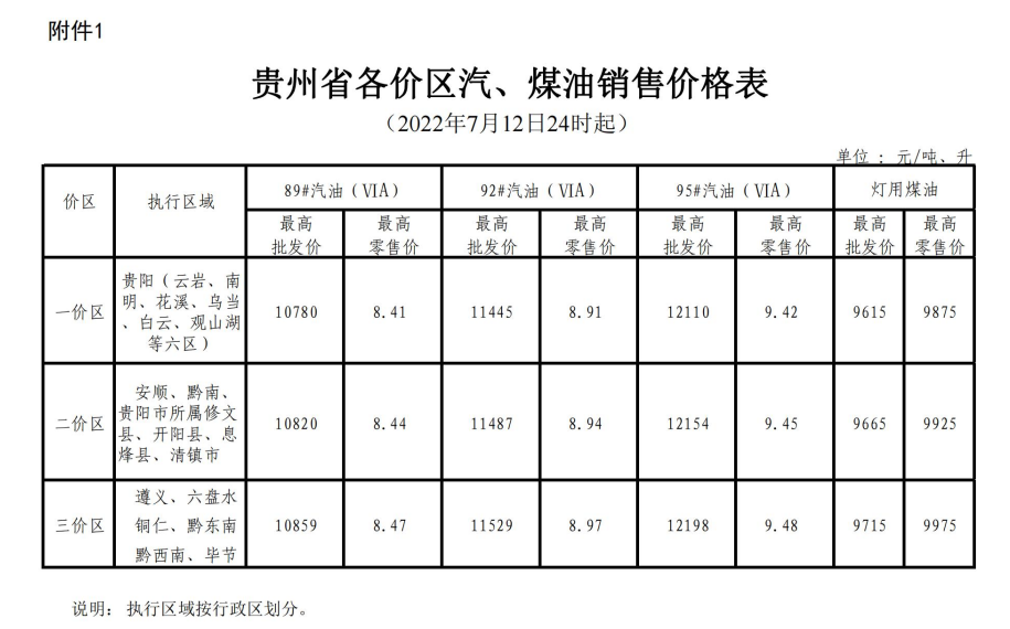 多彩贵州网讯(本网记者 吴蔚)7月12日,记者从贵州省发展改革委获悉,根据国家成品油价格形成机制,国家发展改革委决定自2022年7月12日24时起下调国内成品油价格。