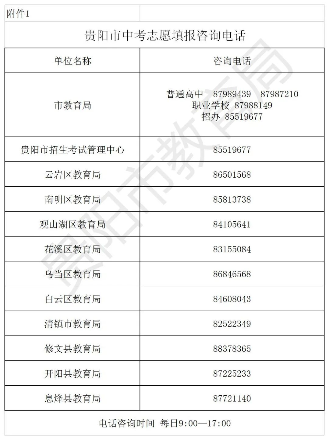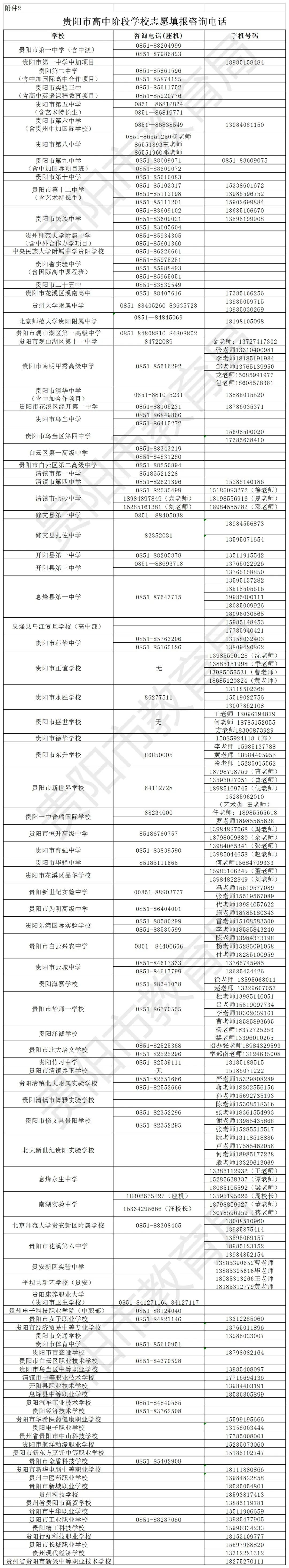 为确保广大考生及其家长充分知晓中考志愿填报的有关政策及操作流程,7月14日,贵阳市教育局公布各区(市、县)教育局,以及各高中阶段学校志愿填报咨询电话。
