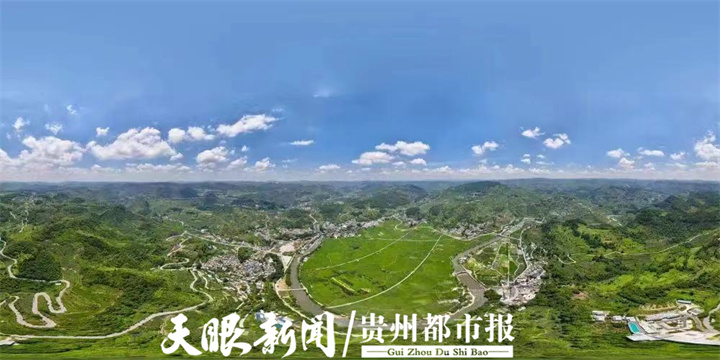 开阳县禾丰乡千亩稻田目前观景正当时,绿色大地上绘就了文字、建筑物、华表、飘带等图案,颜色由紫色、黄色、绿色组成,稻田画地处禾丰乡十里画廊“玉水金盆”千亩大田坝内,四周青山绵绵,坝区绿水潺潺,在微风的吹拂下,千亩稻苗随风起伏,远山、河水、村庄、稻田,与稻田画相映成趣,是欣赏打卡田园美景的好去处。