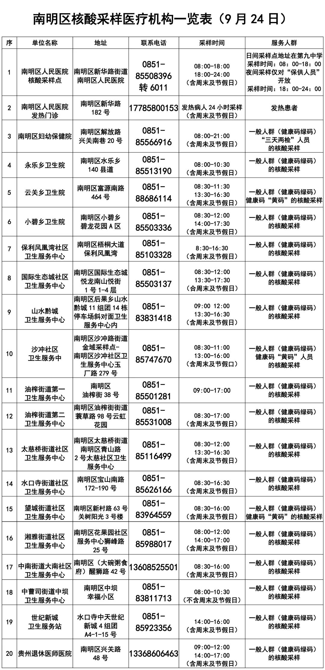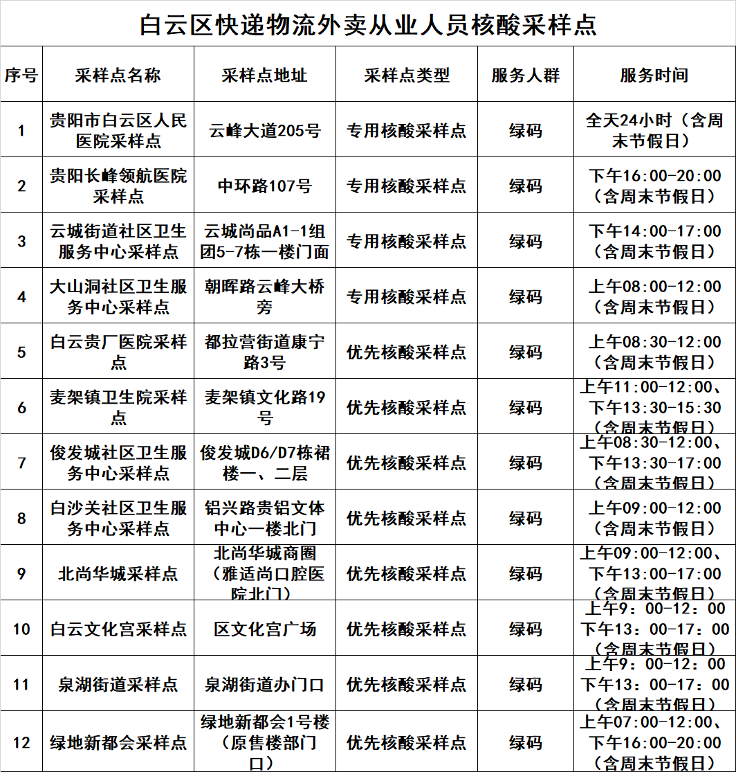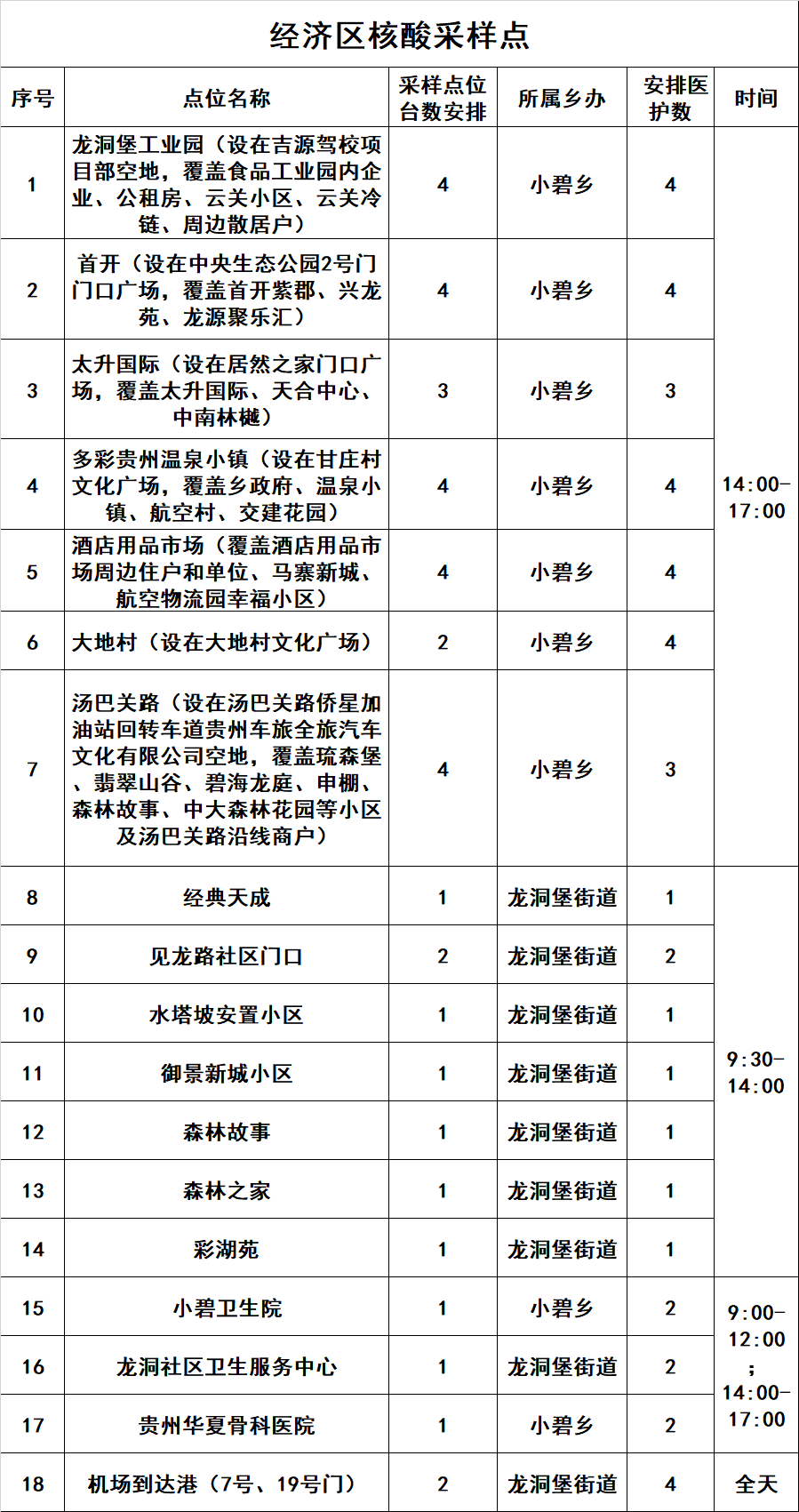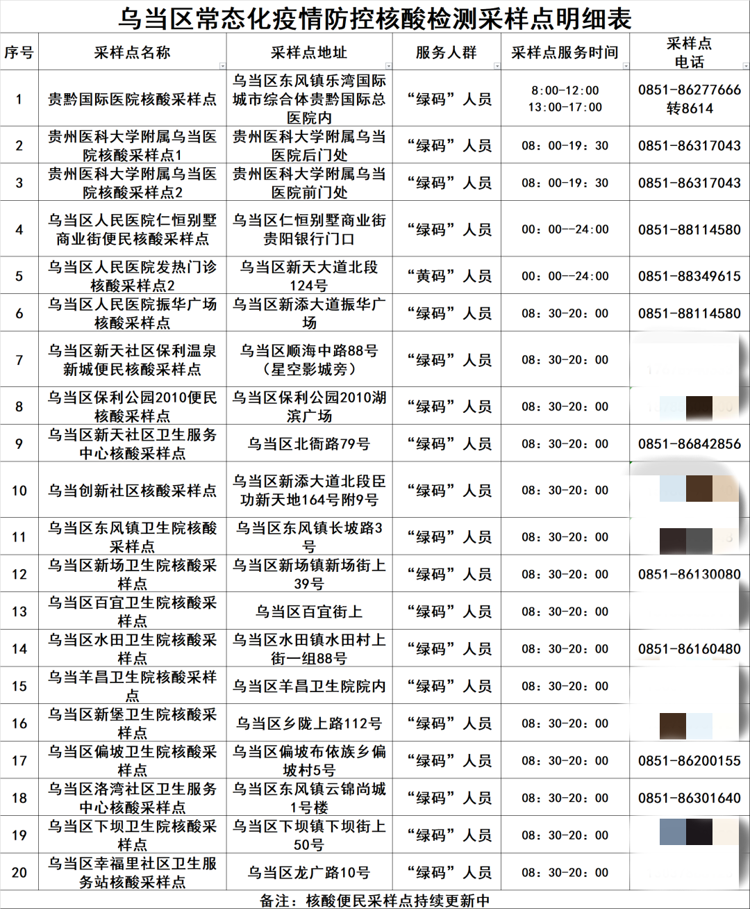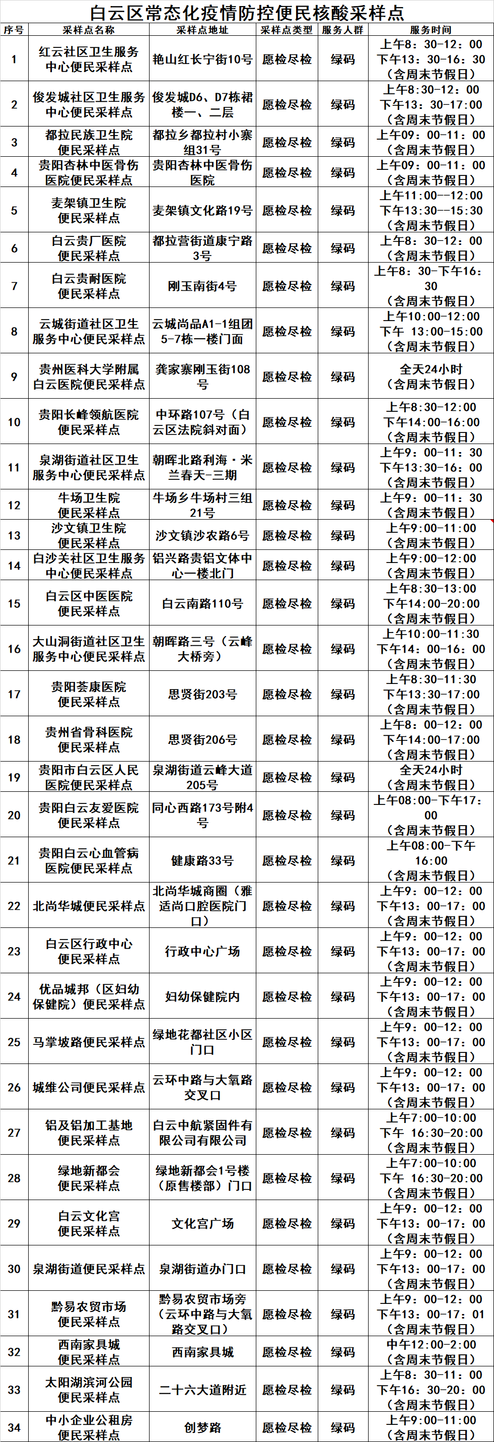 为方便在常态化疫情防控区域的市民查询,贵阳网·甲秀新闻梳理汇总相关区县的常态化核酸采样点信息。(注:此为动态信息,请关注最新变化。)