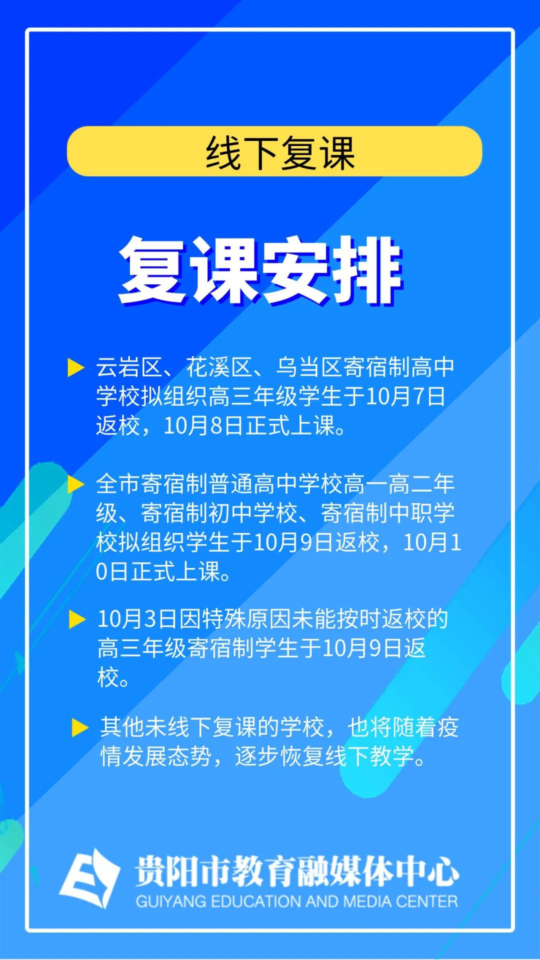 10月8日起,贵阳寄宿制学校逐步恢复线下教学