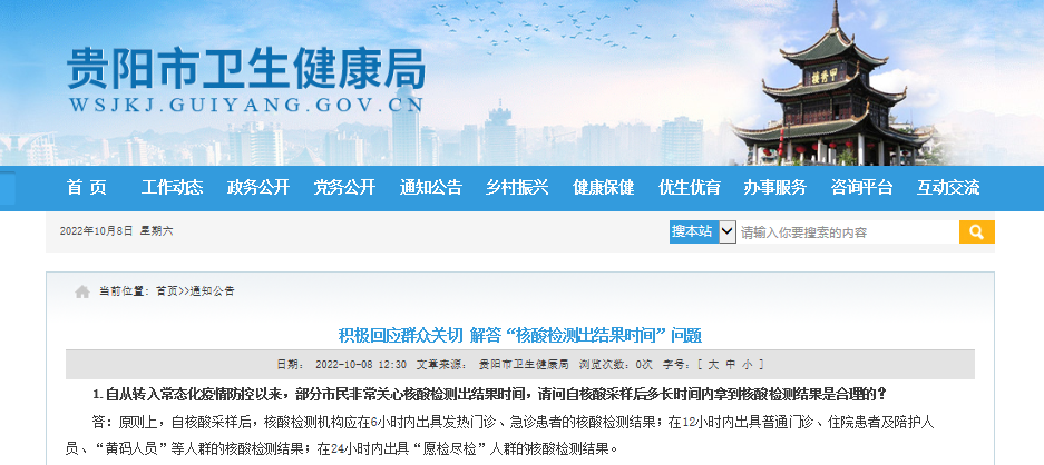 10月8日,记者从贵阳市卫生健康局官网获悉,该局对于市民关心的核酸检测出结果时间、如何领取纸质检测报告等问题进行了回应。