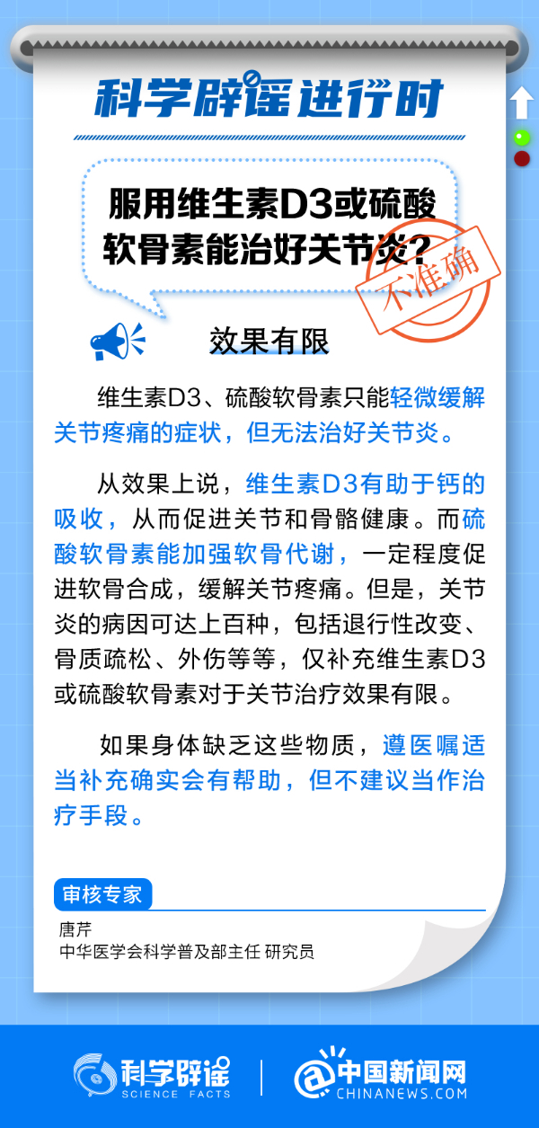 服用维生素D3或硫酸软骨素能治好关节炎?