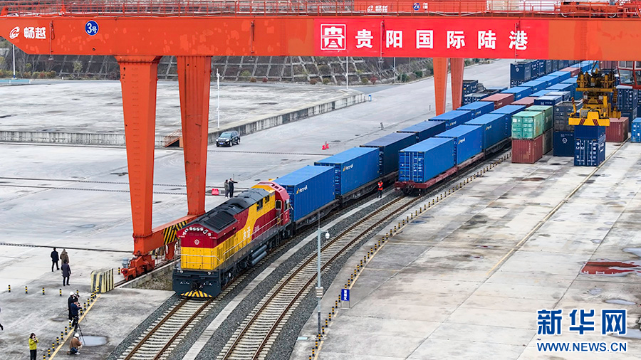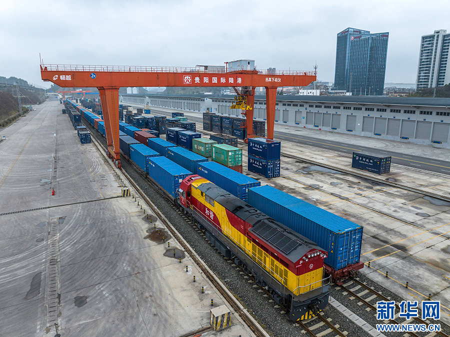 2月8日,中欧班列列车驶出贵阳国际陆港都拉营站。