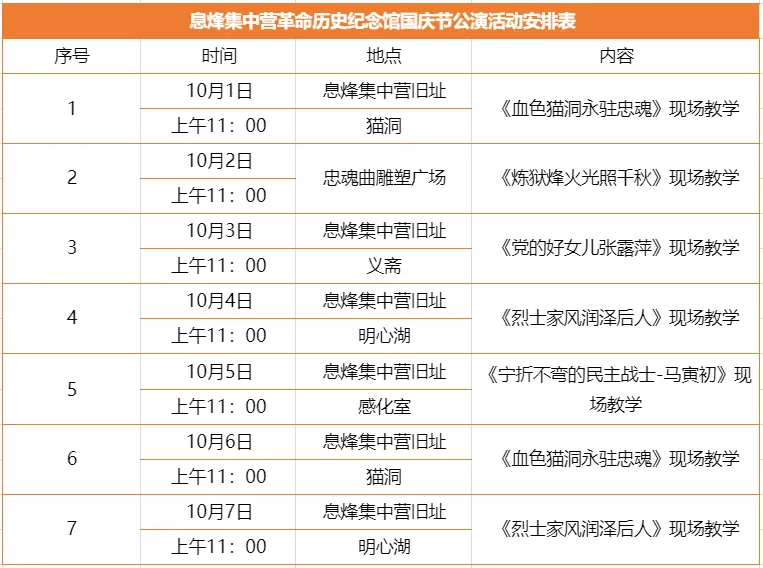 息烽集中营革命历史纪念馆国庆节公演活动安排表