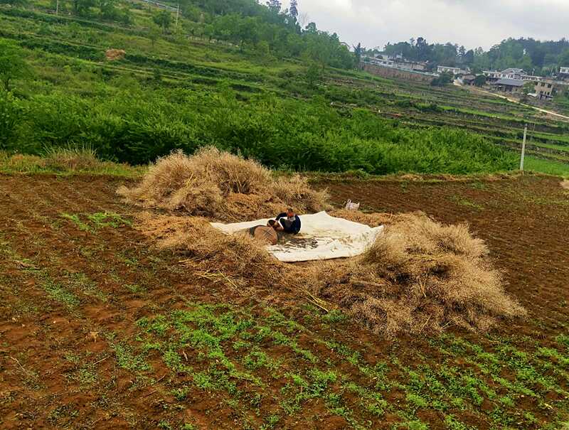 近期以来,养龙司镇的农户抢抓有利天气,挥舞镰刀在田间来回穿梭,全力收割油菜。一簇簇的油菜被摆放成一堆堆的“菜籽垛”,经过晾晒去除水分后使用农机收籽或使用连枷拍打,一粒粒菜籽就被分离出来,空气中仿佛能够闻到一缕菜籽油香。