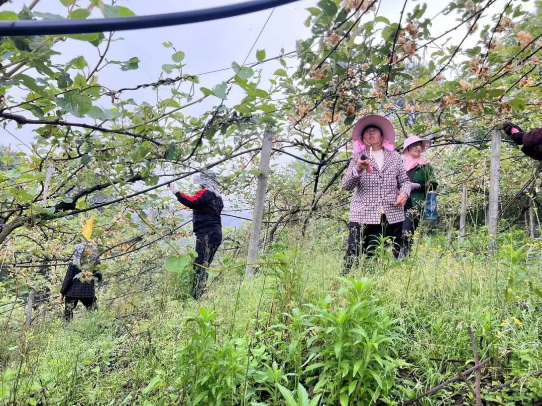 “猕猴桃属雌雄异株花果树,单靠自然授粉坐果率较低,人工授粉是提高猕猴桃产量的关键。”在中坝村猕猴桃种植基地,农业专家详细介绍猕猴桃的生长特点、授粉原理和人工授粉的方法,并亲自做出示范。专家指导农户们使用细长的刷子或棉签,将雄性花朵的花粉轻轻地刷到雌性花朵上,以促进授粉。此外,他们还强调了授粉的时间和频率,以确保每个花朵都能得到充分的授粉。