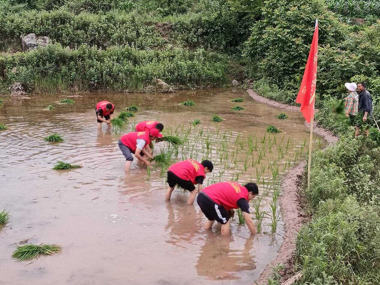 在九庄镇纸房村,绿意盎然的稻田里,村民们三五成群地互帮互助抢插早稻,他们挽起裤腿、撸起袖子,埋头弓腰,动作娴熟敏捷地将一株株碧绿的秧苗插进稻田,期待孕育丰收的稻穗。