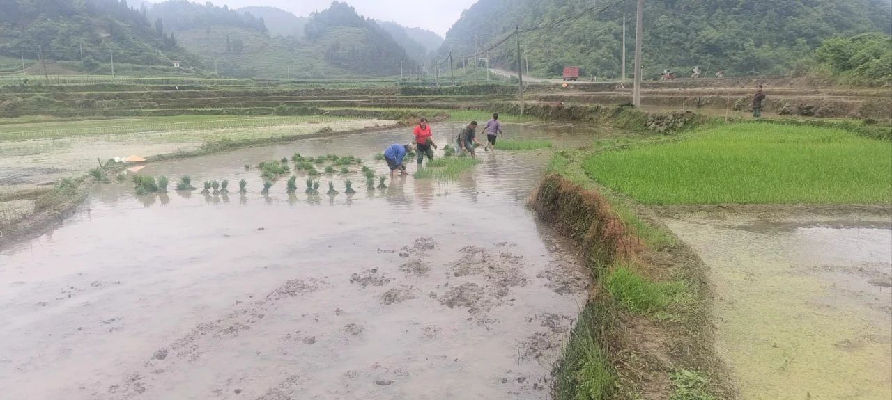 “水稻育苗一般要30天左右,就是这五月初,小满左右插秧最合适。”光荣村村民杨崇霞边讲边搬运秧苗至田坎边,帮忙插秧的搭档把秧苗移栽入稻田。村民们默契配合,一边插秧一边谈起稻谷收成,脸上洋溢着幸福的笑容。