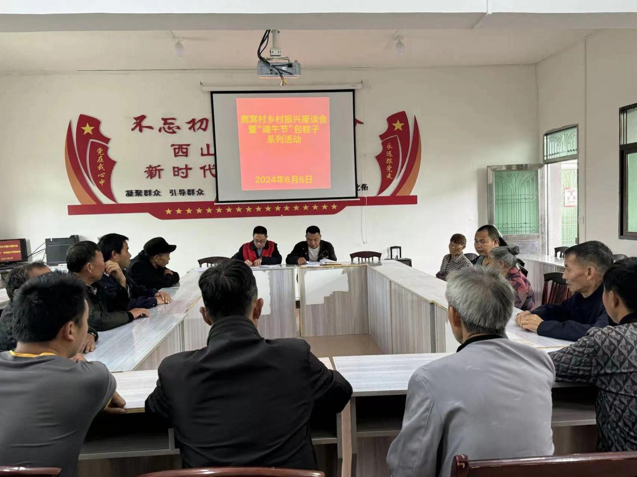 在弥漫的粽香中,鹿窝村借此契机组织党员代表、村民代表、脱贫户、监测户家庭成员代表召开暖心座谈会,汇报了驻村工作队工作开展情况,宣传了乡村振兴相关惠民政策,普及了防网络诈骗知识,分享了涵养文明新风的事例,为党员群众送去了组织的关怀和节日的祝福。