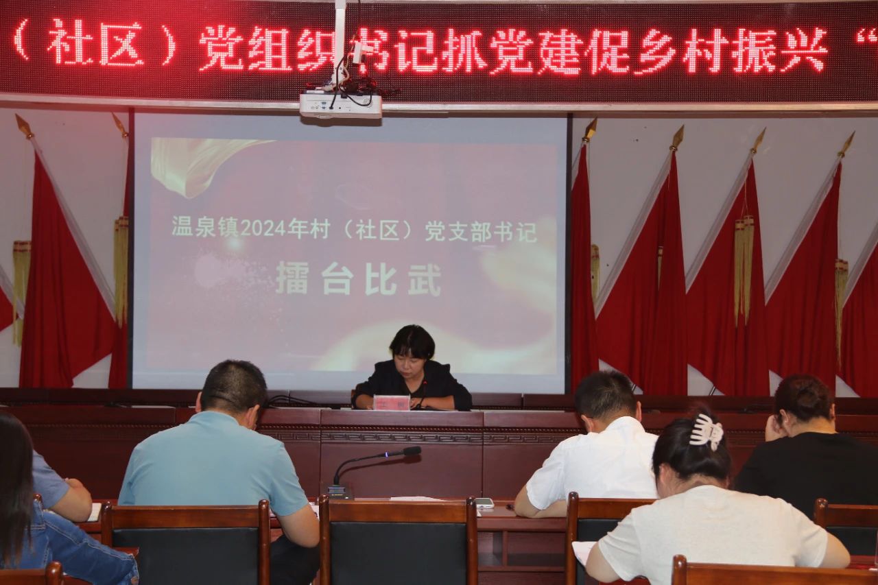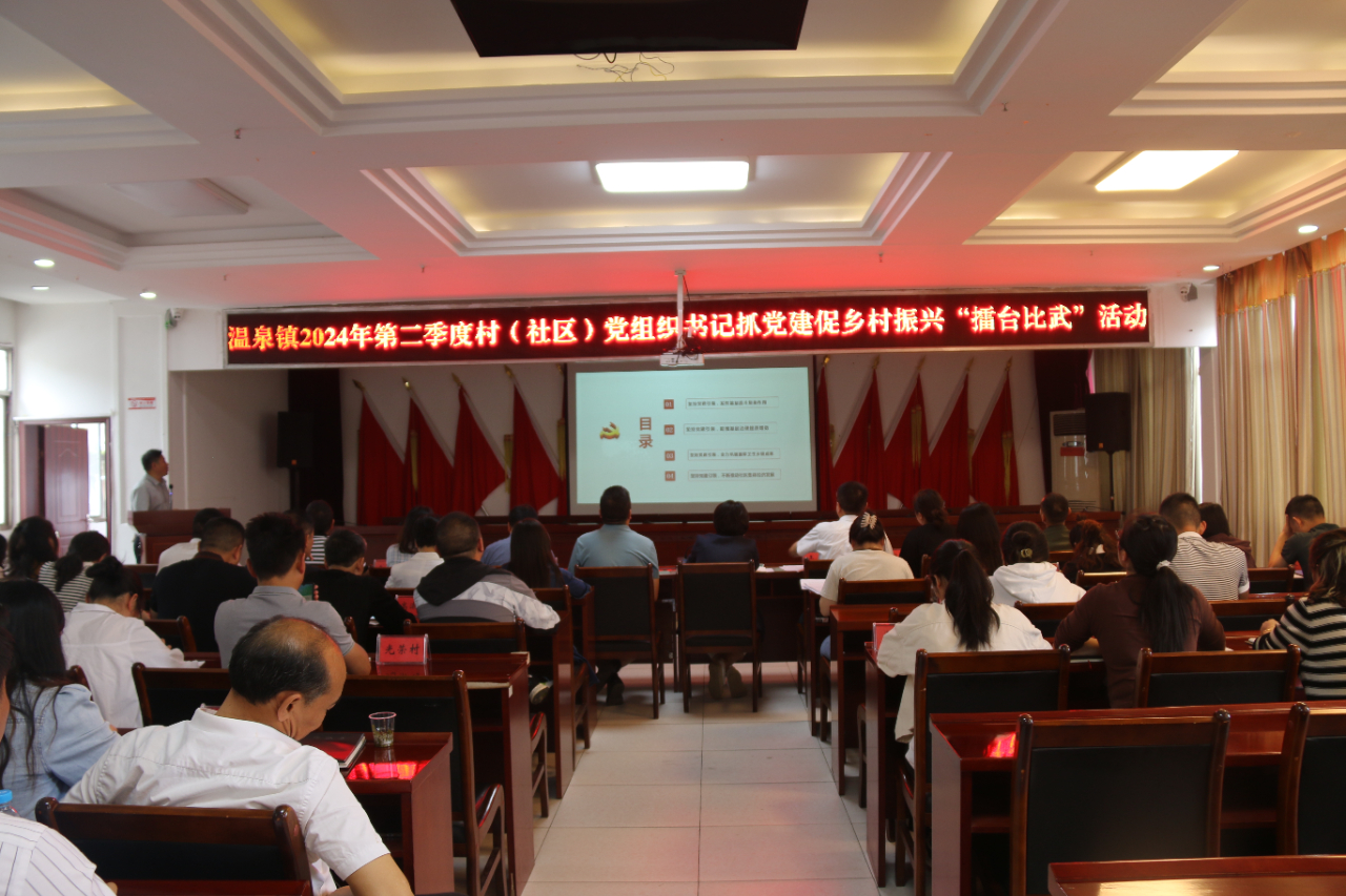 为深入实施“筑固工程”,扎实推进“五个一”行动,不断建强基层党组织书记队伍,推动“排队抓尾·双整双创”工作取得成效,6月11日,温泉镇开展2024年第二季度村(社区)党组织书记抓党建促乡村振兴“擂台比武”活动,镇党政班子成员、各部门负责人、各村(社区)党支部书记、驻村第一书记、远教专员参加。