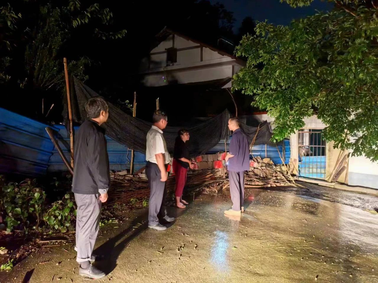 温泉镇党委高度重视,第一时间召开汛期工作部署会议,将工作部署、调度指挥、措施落实、防汛救灾等责任细化细分。镇党政班子成员深入一线巡查指导,各村(社区)党员干部冒雨连夜巡查山塘水库、地质灾害隐患点、老旧危房等重点区域、重要点位,同时,发挥镇村干部、驻村干部、网格员、安全“吹哨人”、党员志愿者等力量第一时间开展拉网式大排查,针对独居老人、留守老人儿童、困难群众等特殊群体开展“敲门行动”,入户现场查看住房安全情况,了解生活需求,宣传防汛知识,最大限度消除安全隐患。“现在下这么大的雨,你们还特意过来提醒我们,你们辛苦了,我们生活物品都充足的,感谢政府的关心。”兴隆村村民陈期贵感谢地说道。