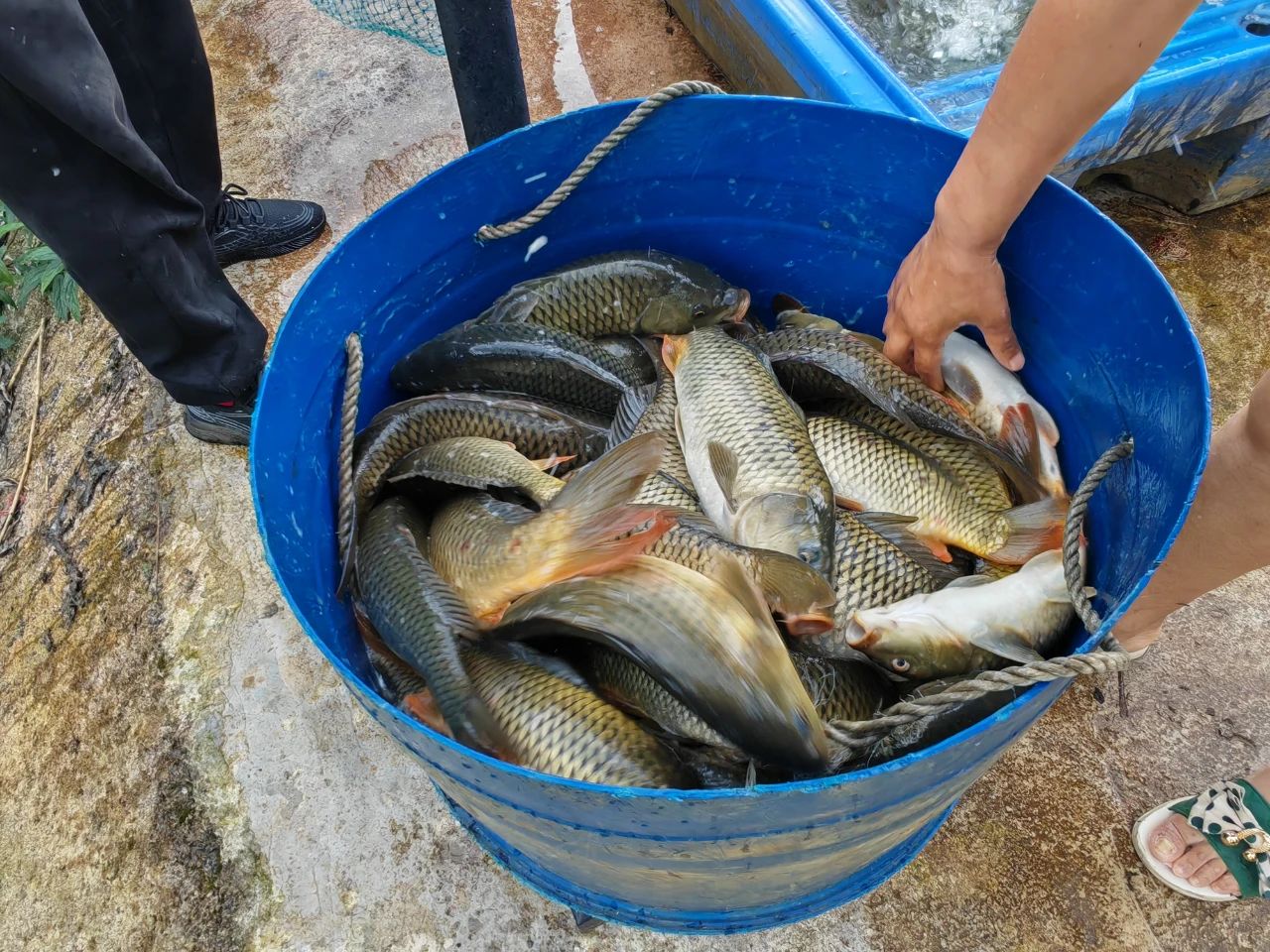 “这次是入夏以来的第三次捕捞,今年以来,我们鱼塘紧跟市场行情,连续开展捕鱼销售作业,争取效益最大化。”在捕捞现场,兴隆村驻村第一书记刘德耀一边指导村民捕捞,一边介绍,“我们的鱼已经养了2年,主要用原生态的养殖方式,肉质口感比较好,今天上午卖了200斤,收入了2千多元。”